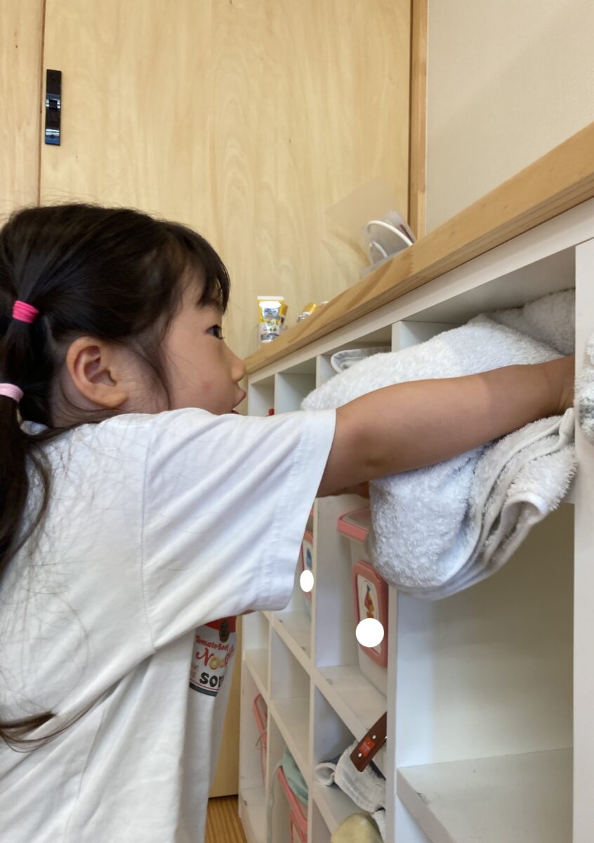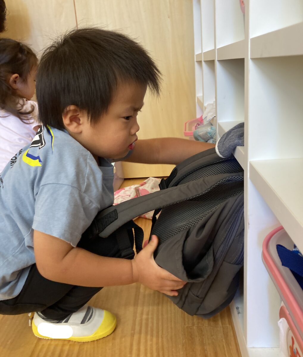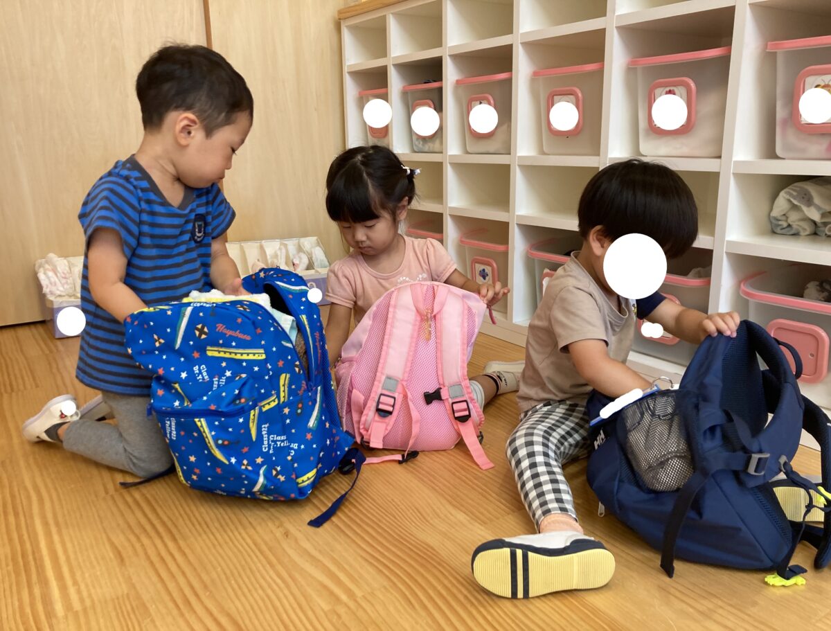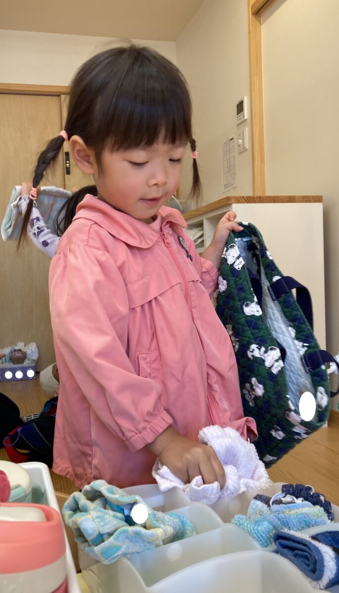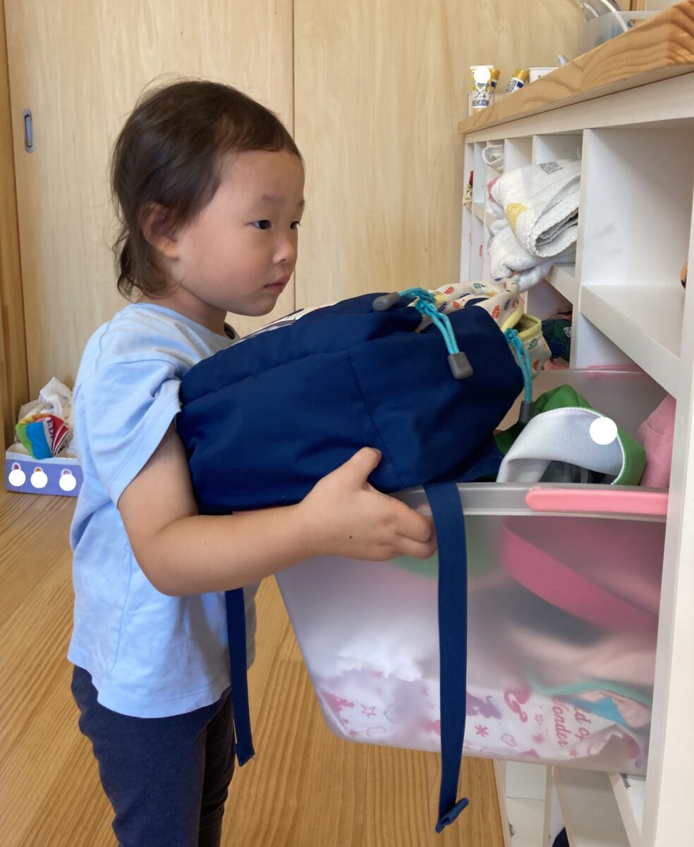 「できるよ!」と言って自分から積極的に準備をしたり、「ここ?」と言って確認したりして自分でお支度できるようになってきました![]()