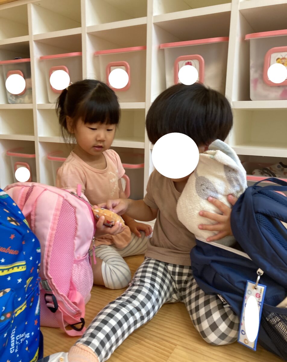 出発準備をする時に手を繋ぐお友だちは誰か聞いてみると、「◯◯くん!」「△△ちゃん!」と言ってペアのお友だちを探して、