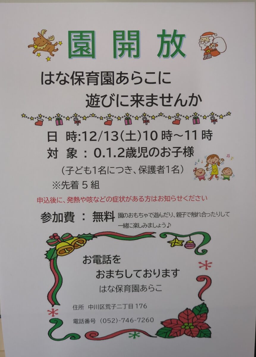 12月 園開放のお知らせ