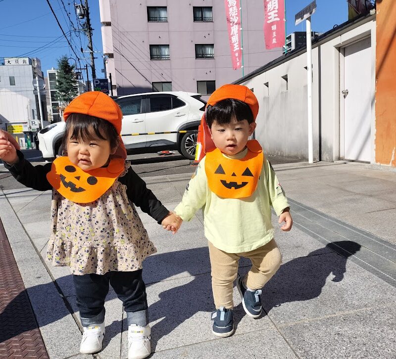 保育園に帰ってから園長先生に「トリックオアトリート!」と言ってお菓子を貰いました!