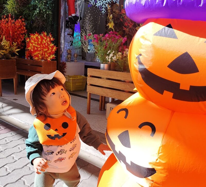仮装してから近くの大須商店街までお散歩しながらハロウィン探しに行きました![]()