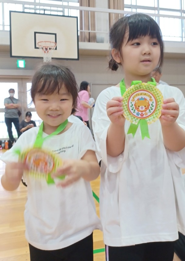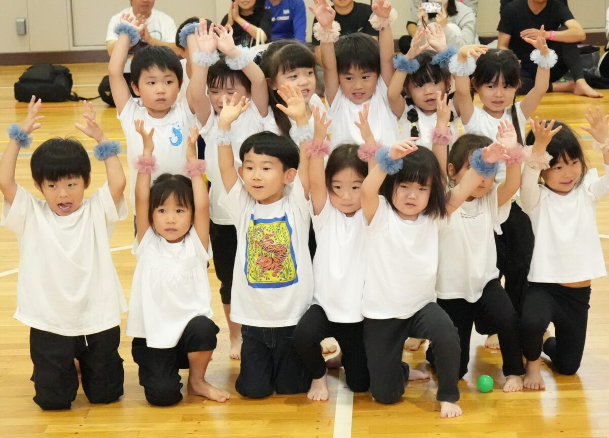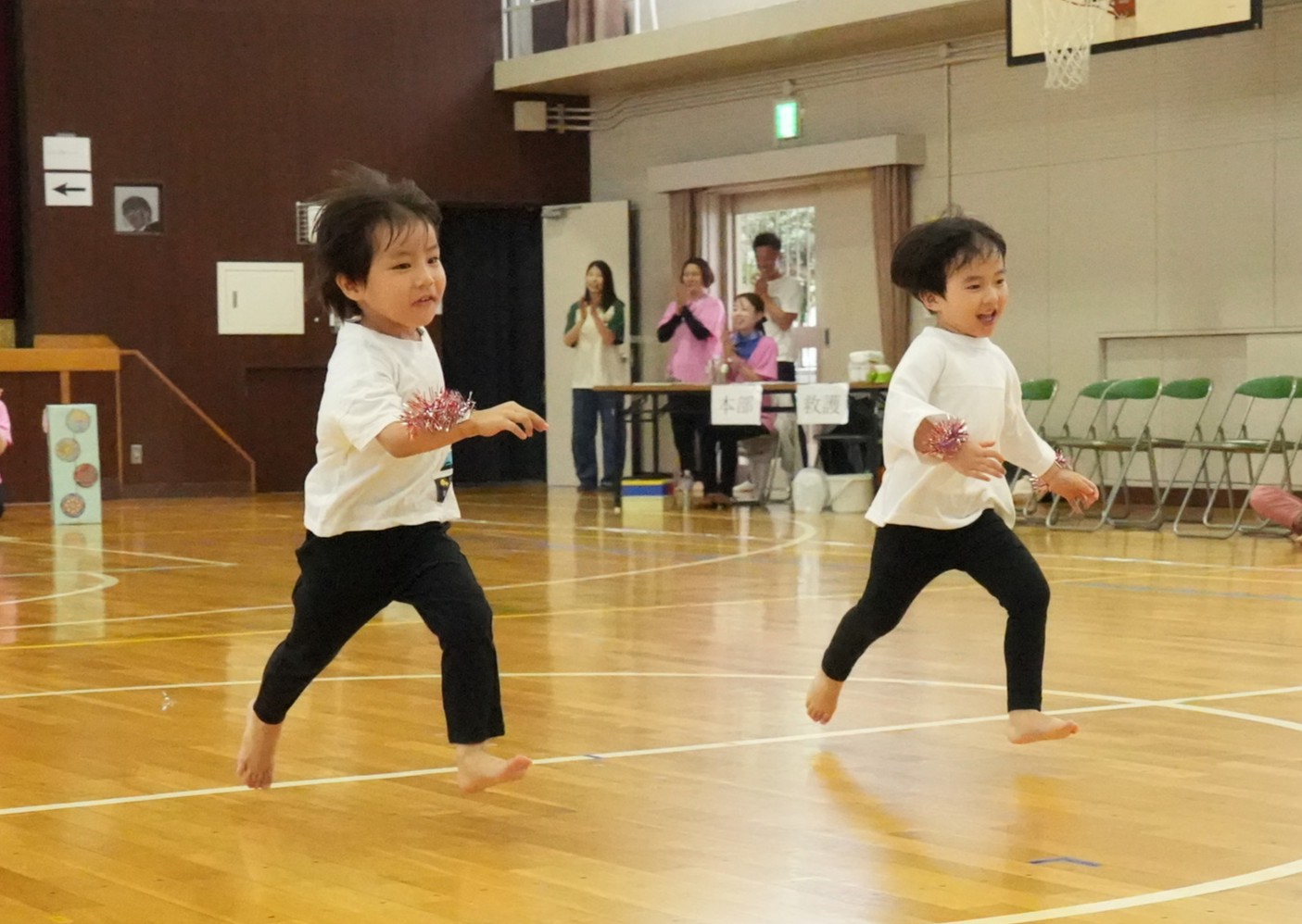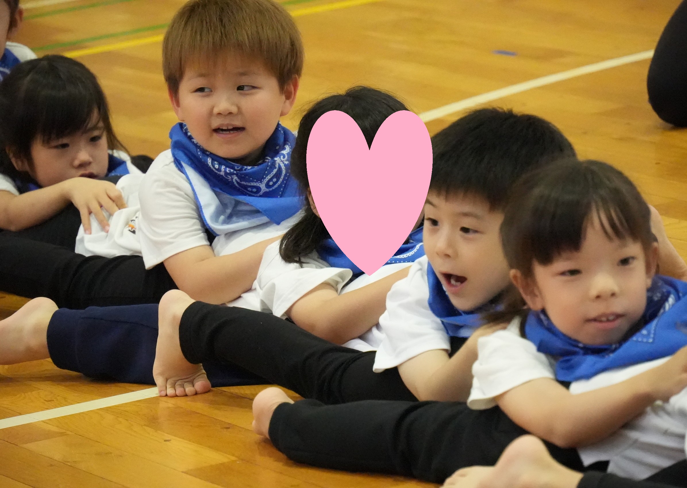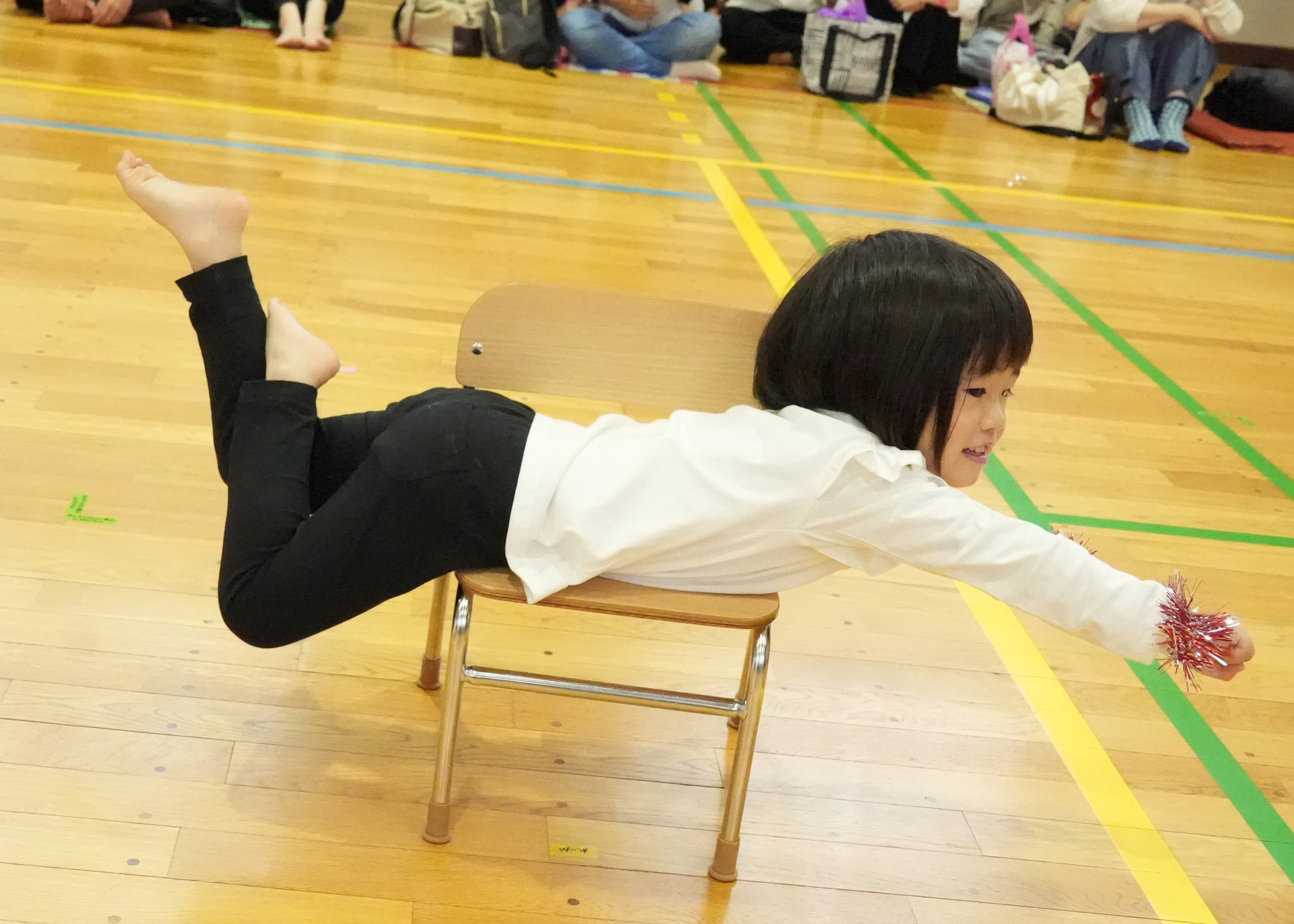 4歳は助走付き前転と鉄棒の前回りを、5歳は後転と跳び箱を披露しました。
