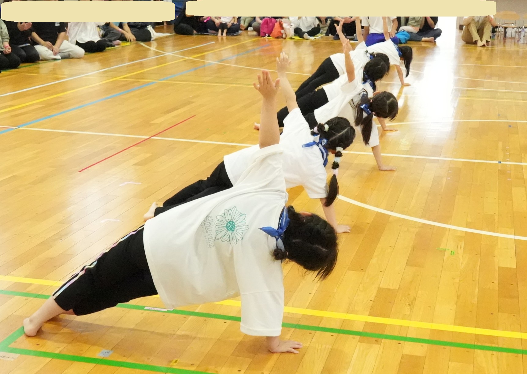 開会式を終えた後、普段子どもたちが体育指導で行っている準備運動を