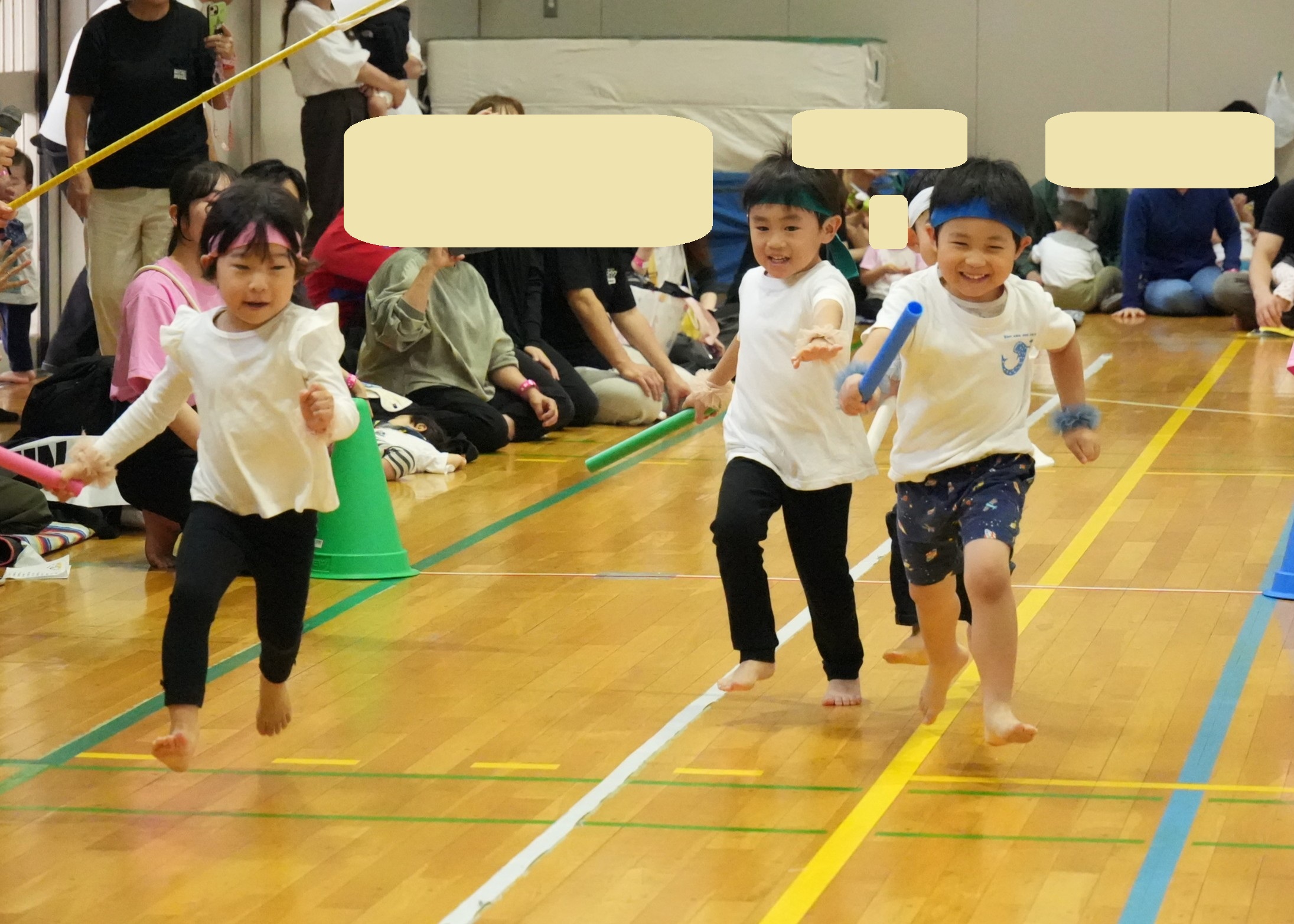 ゴールへ一目散に走る子、お友だちとタイミングを合わせて走る子など