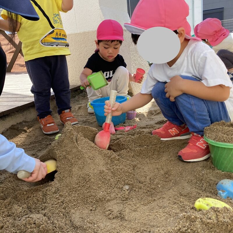 砂場でお山を作るときに自然と協力したりする姿に成長を感じます![]()