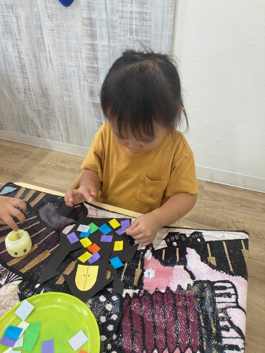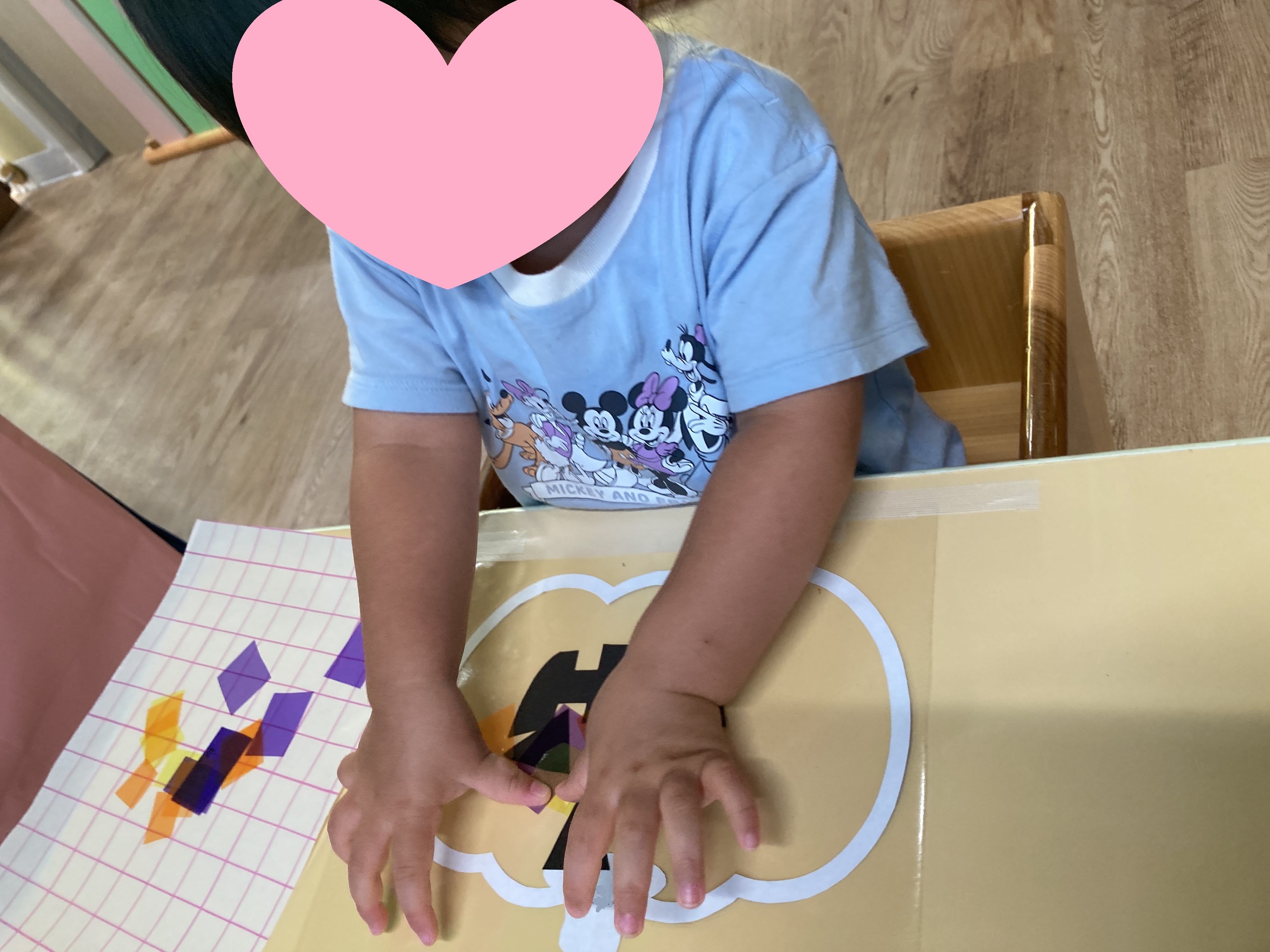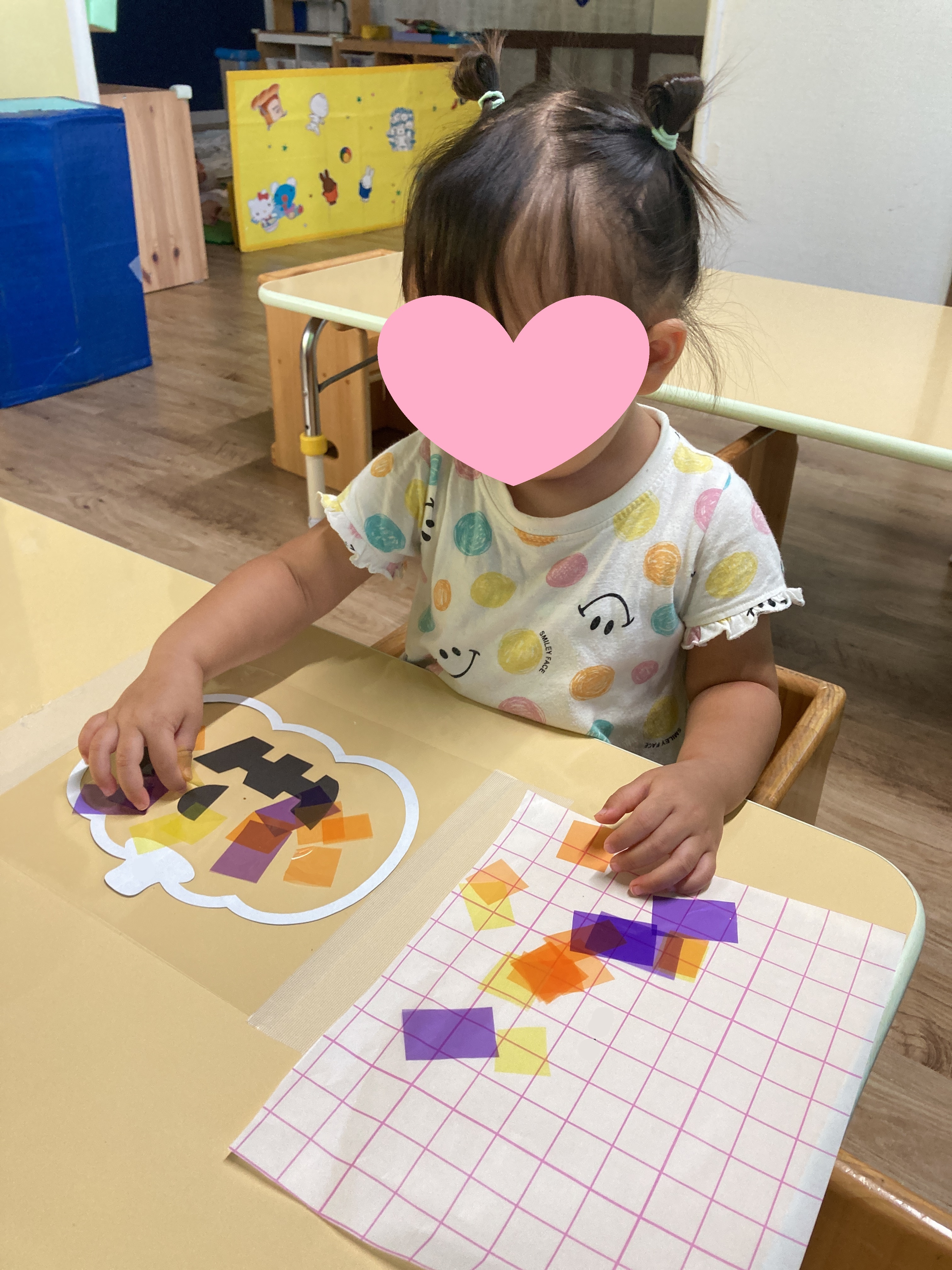 折り紙を目に近づけて「おめめ~!」と楽しみながら制作をする姿もみられましたよ♪