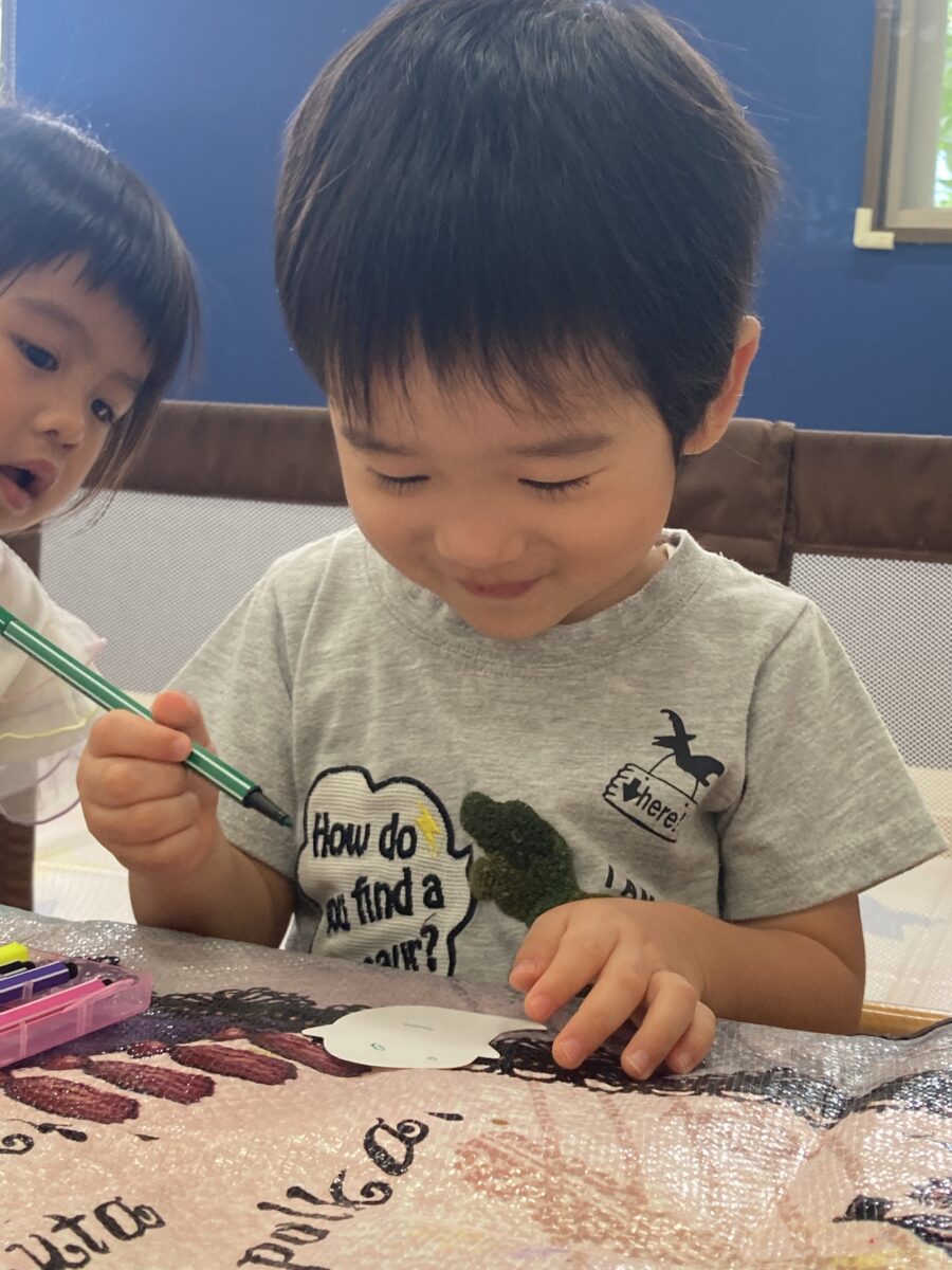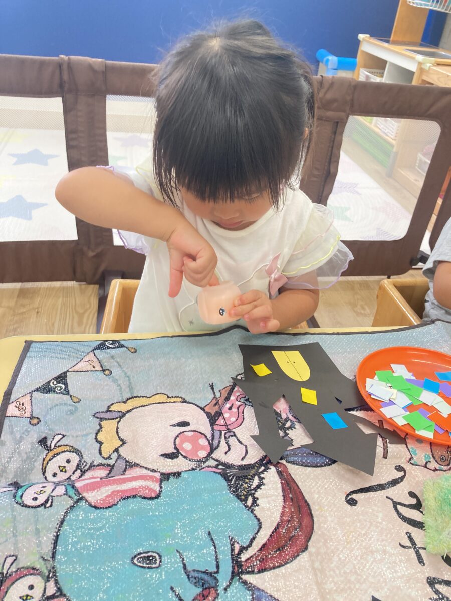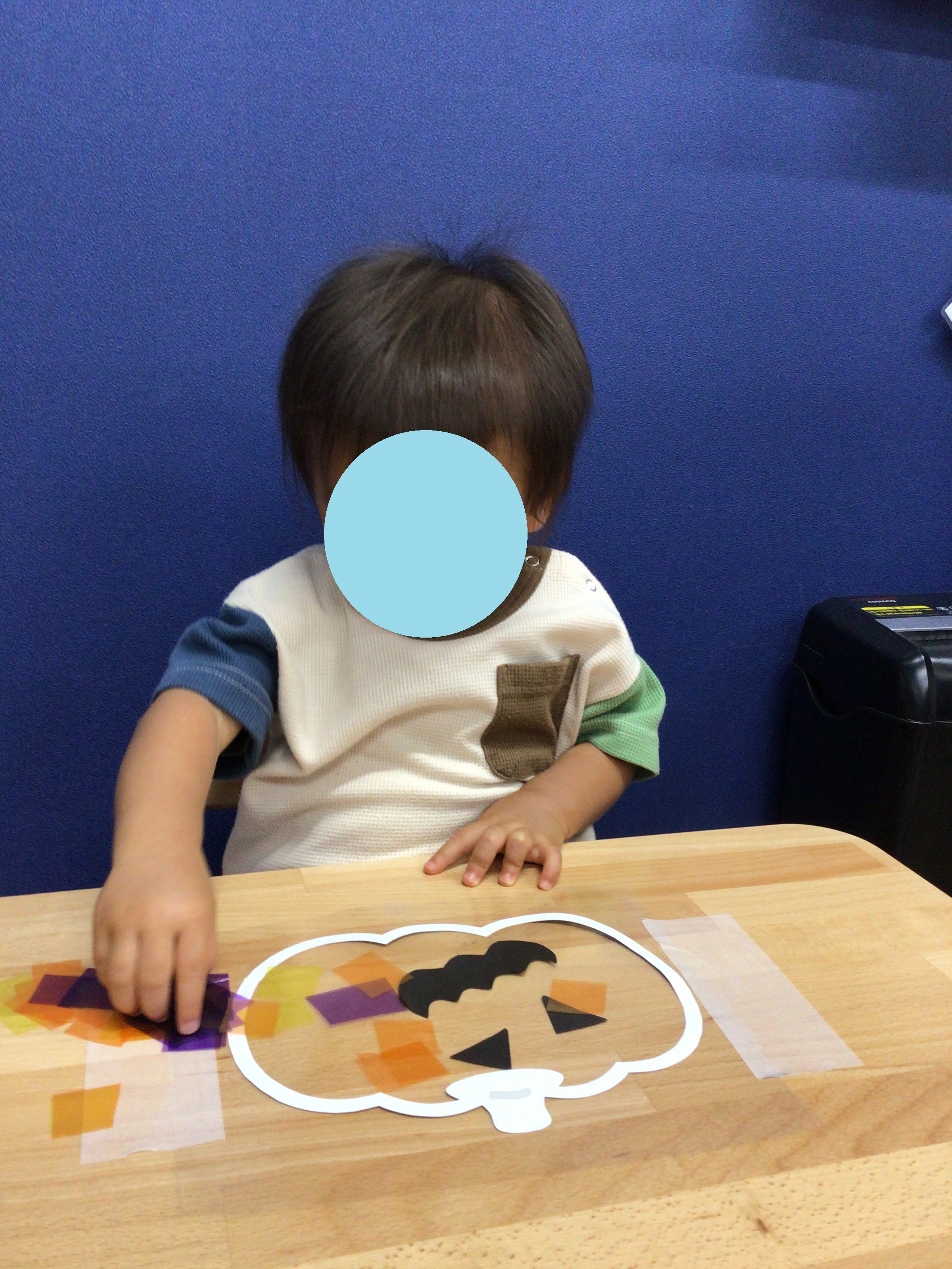 折り紙を目に近づけて「おめめ~!」と楽しみながら制作をする姿もみられましたよ♪