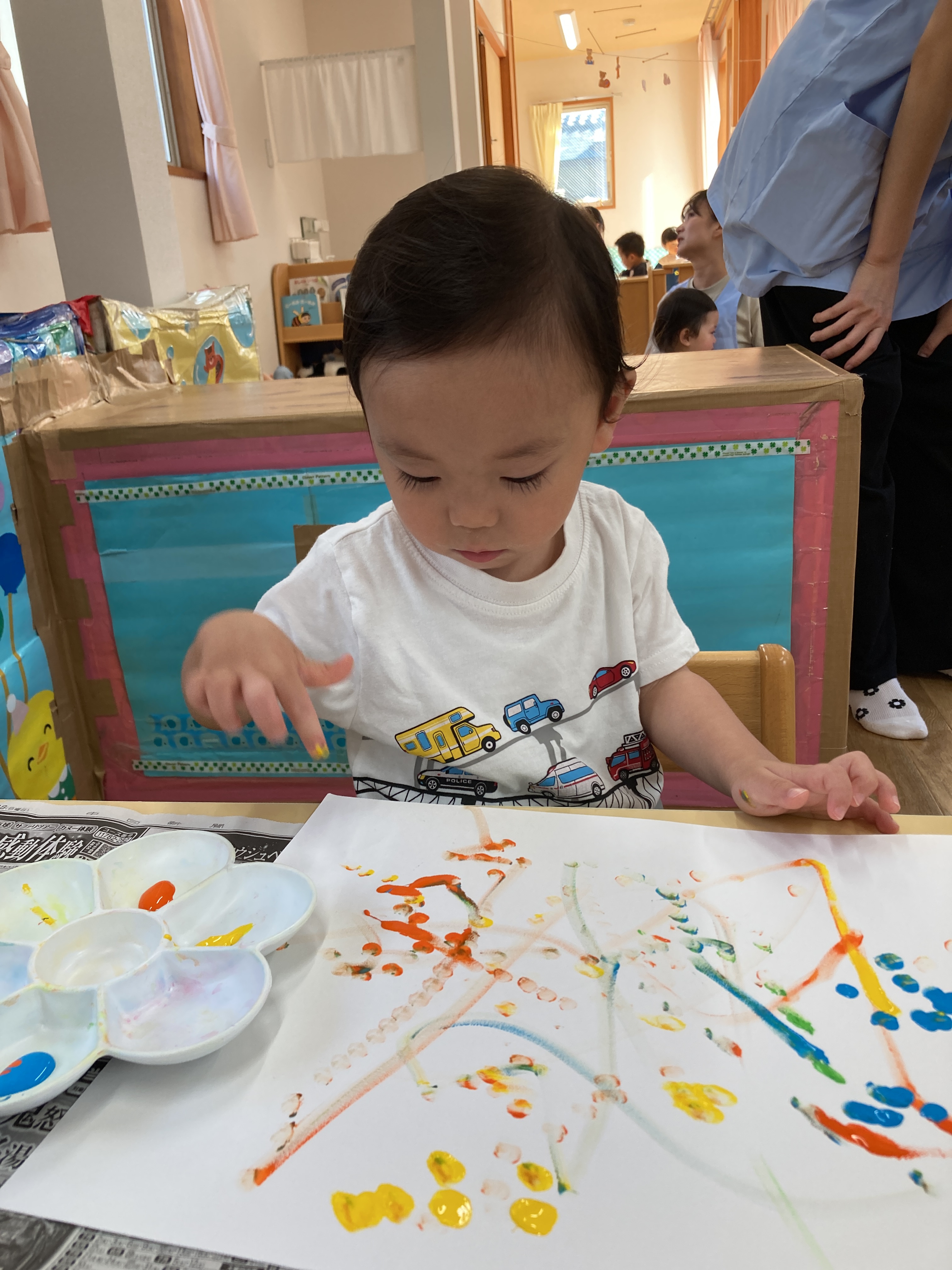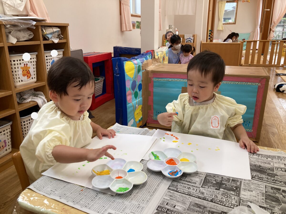 指に絵の具がついたことを嬉しそうに教えてくれる子もいました!
