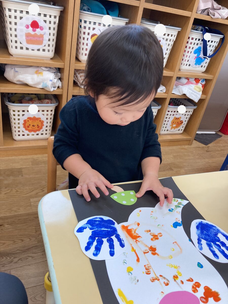 「あお!みどり!」と色の名前を言ったり「ちょんちょん!」と言ったり楽しそうに取り組んでいました!