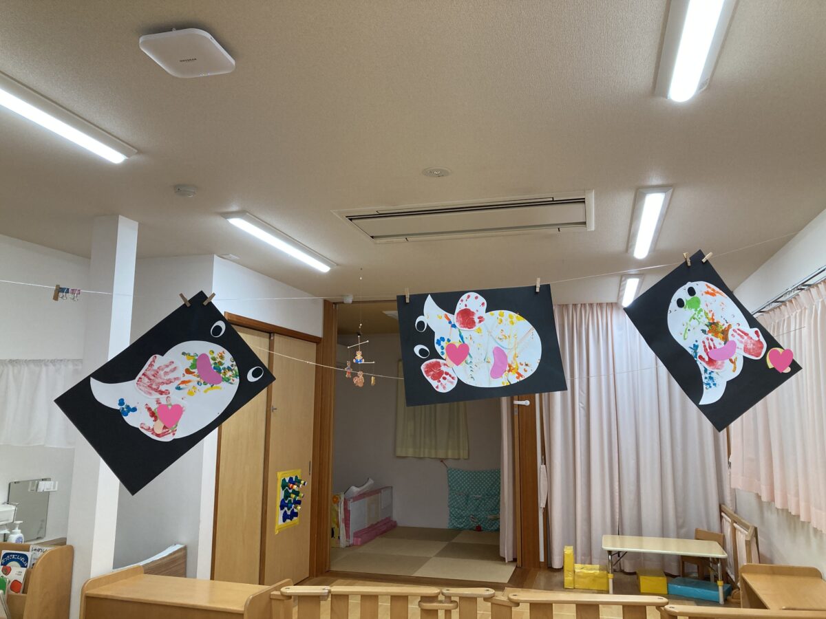 「ここにするー!」「こっちにぶらさげる~!」と、保育者と会話を楽しむ様子も見られました!!