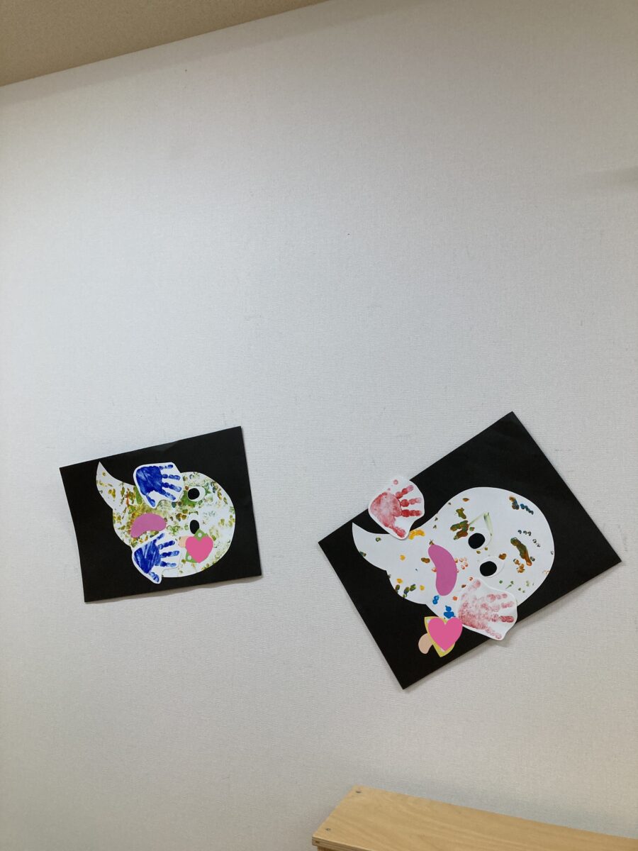 子どもたち一人ひとりに部屋のどこに飾りたいかを聞いて飾りつけしました👻