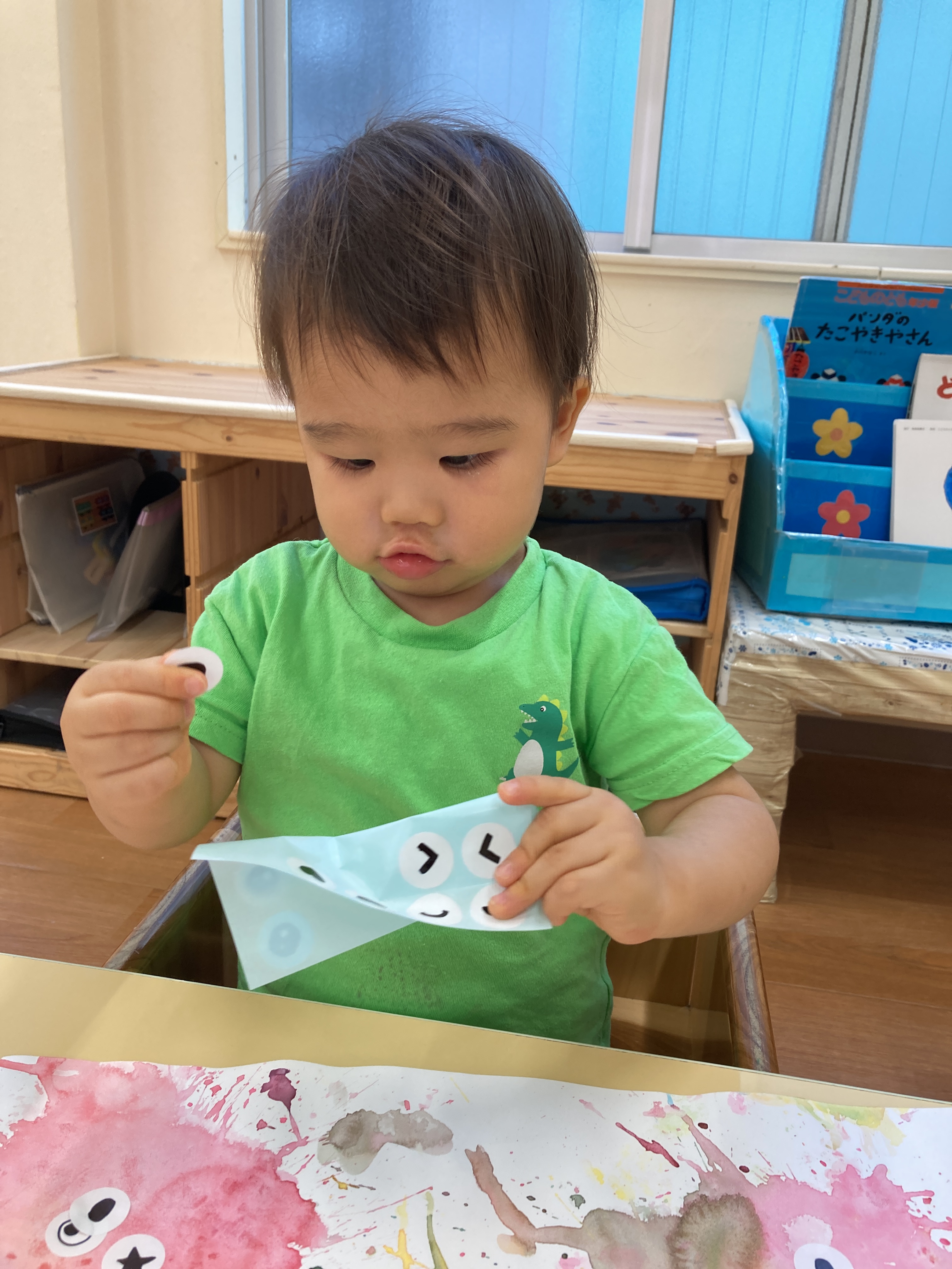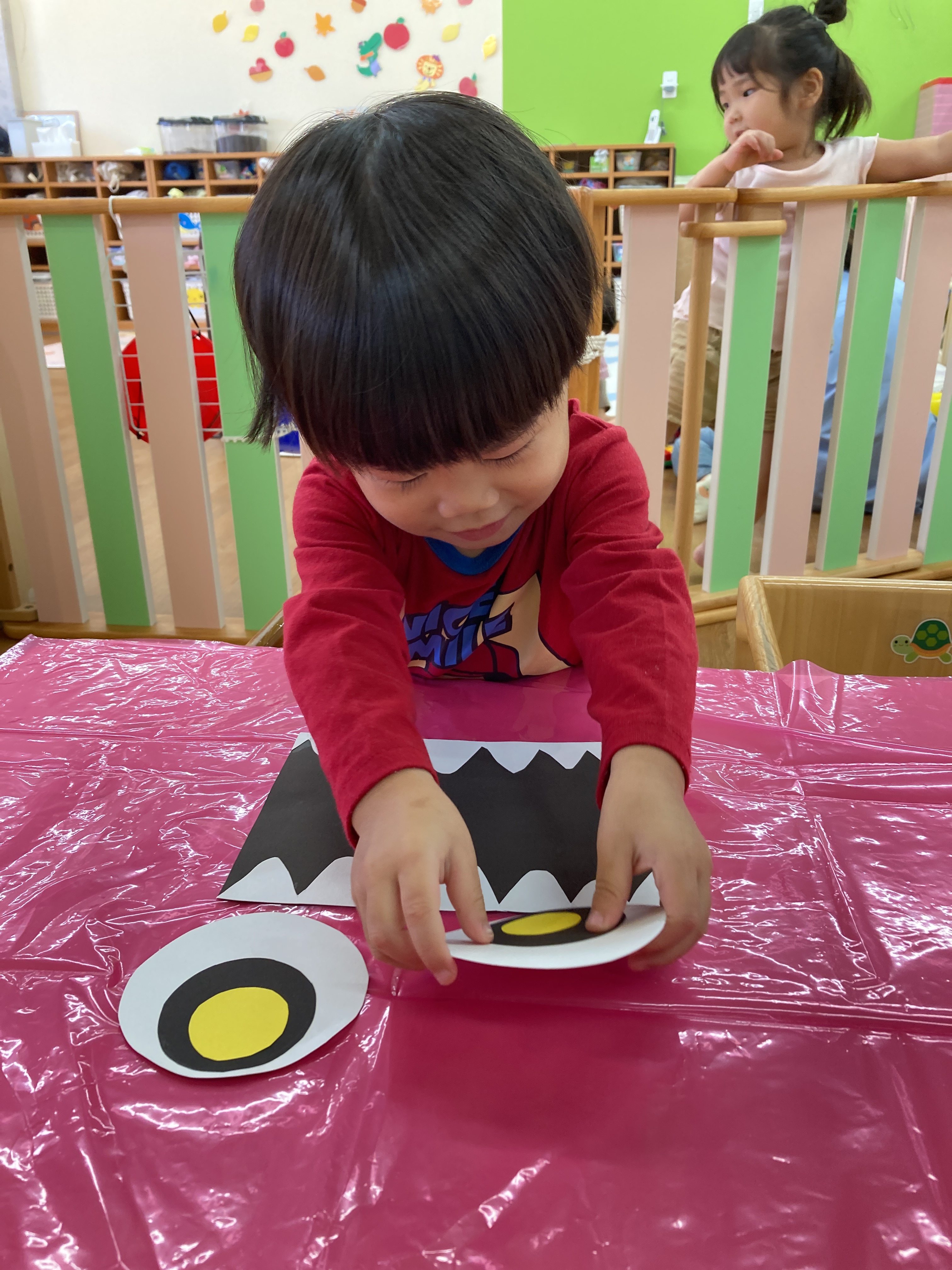 2個の目をくっつけて貼る子やいろいろいますね!!
