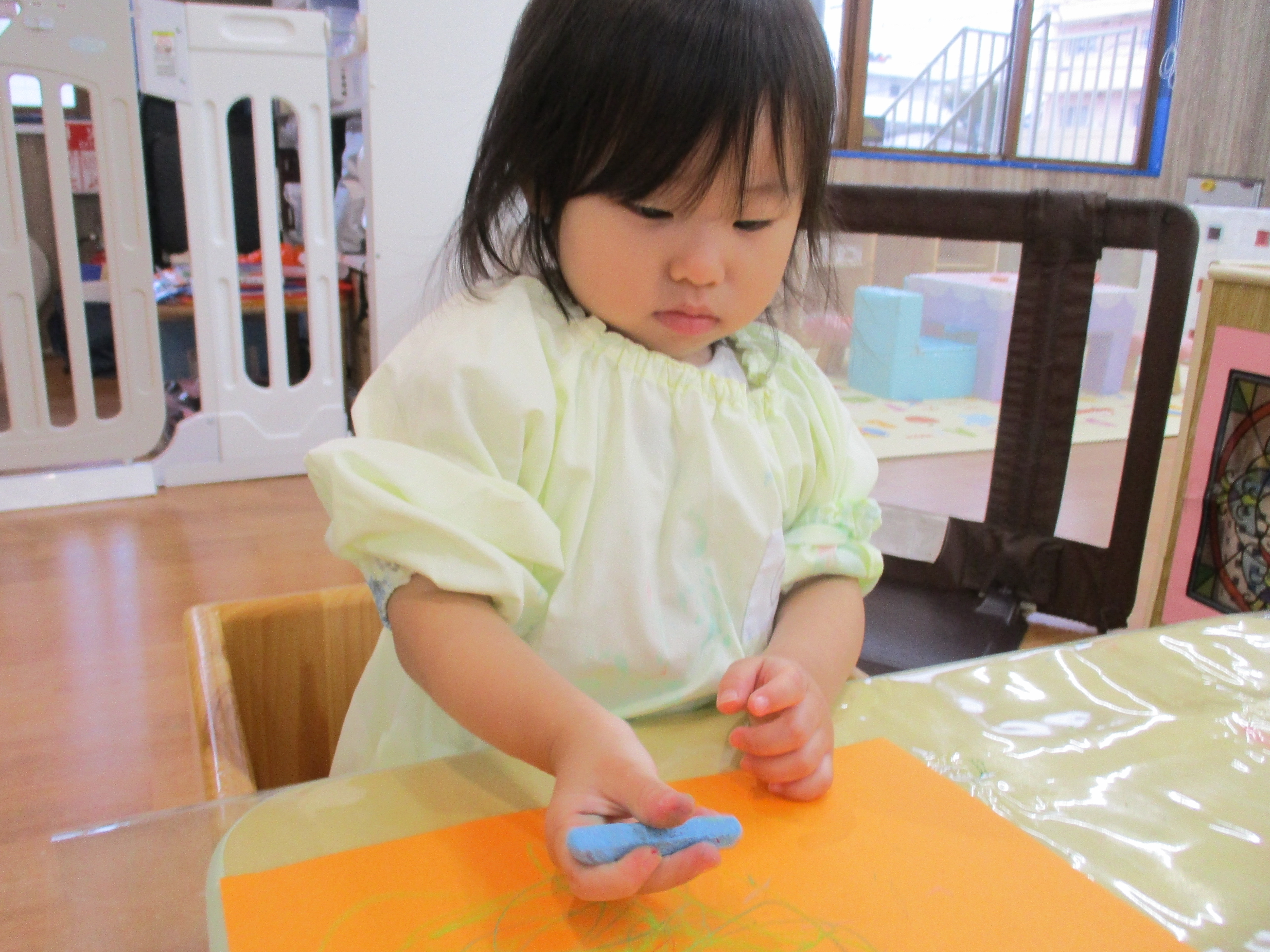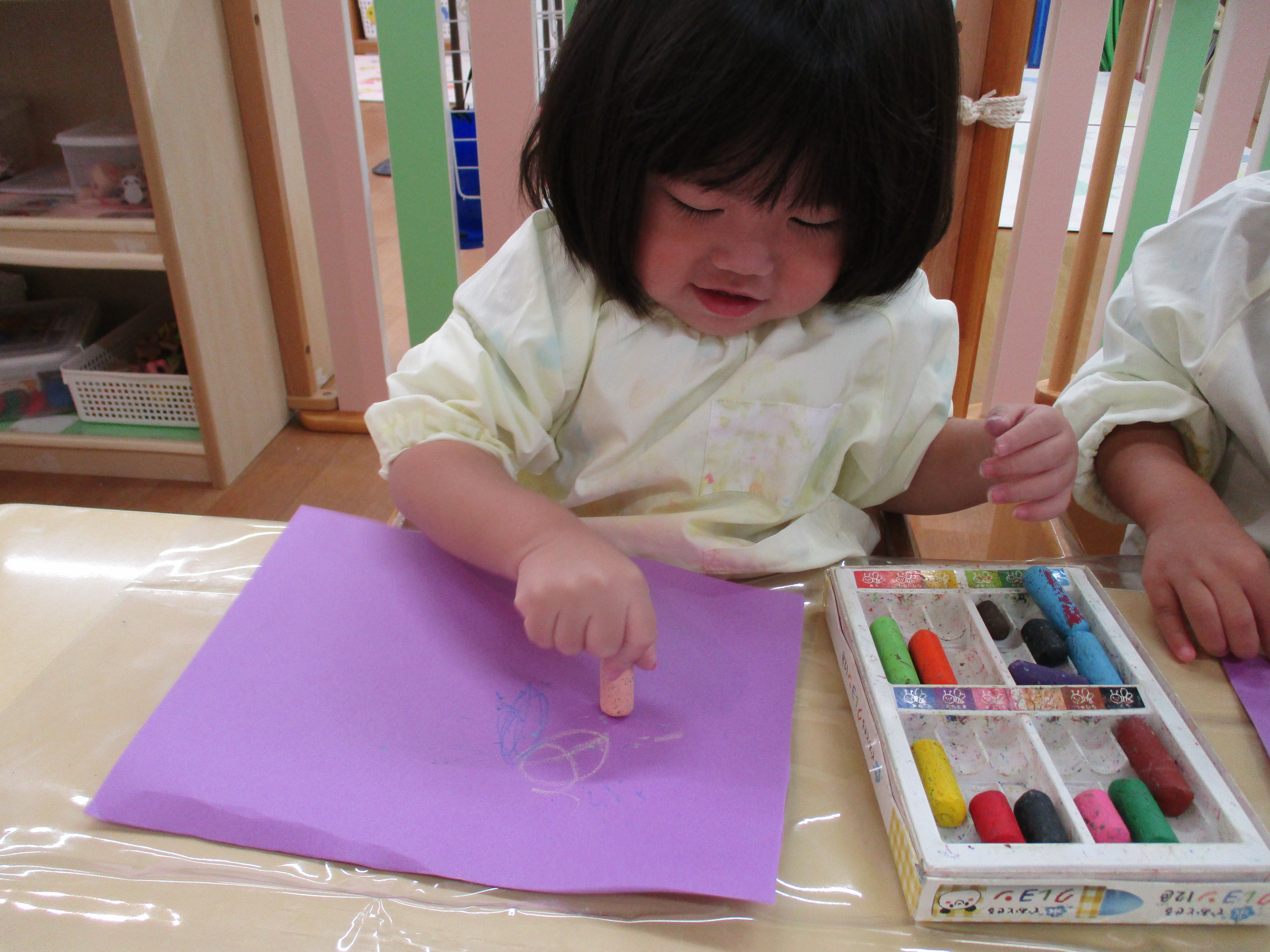 次は紫の画用紙に好きな色を使いグリグリお絵描き![]()