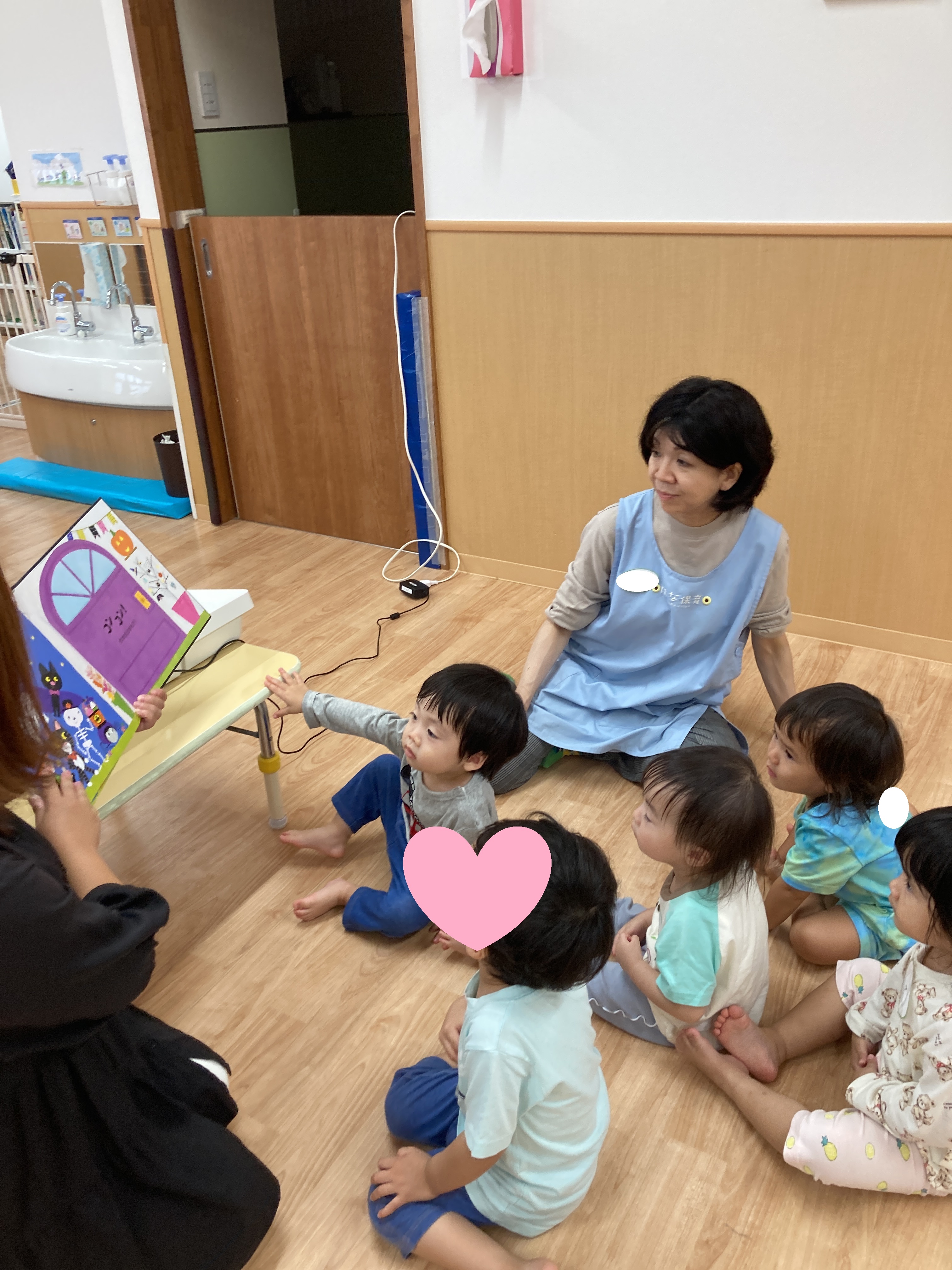 ハロウィンの絵本を読んでもらうと真剣に見ていたうさぎ組さん![]()