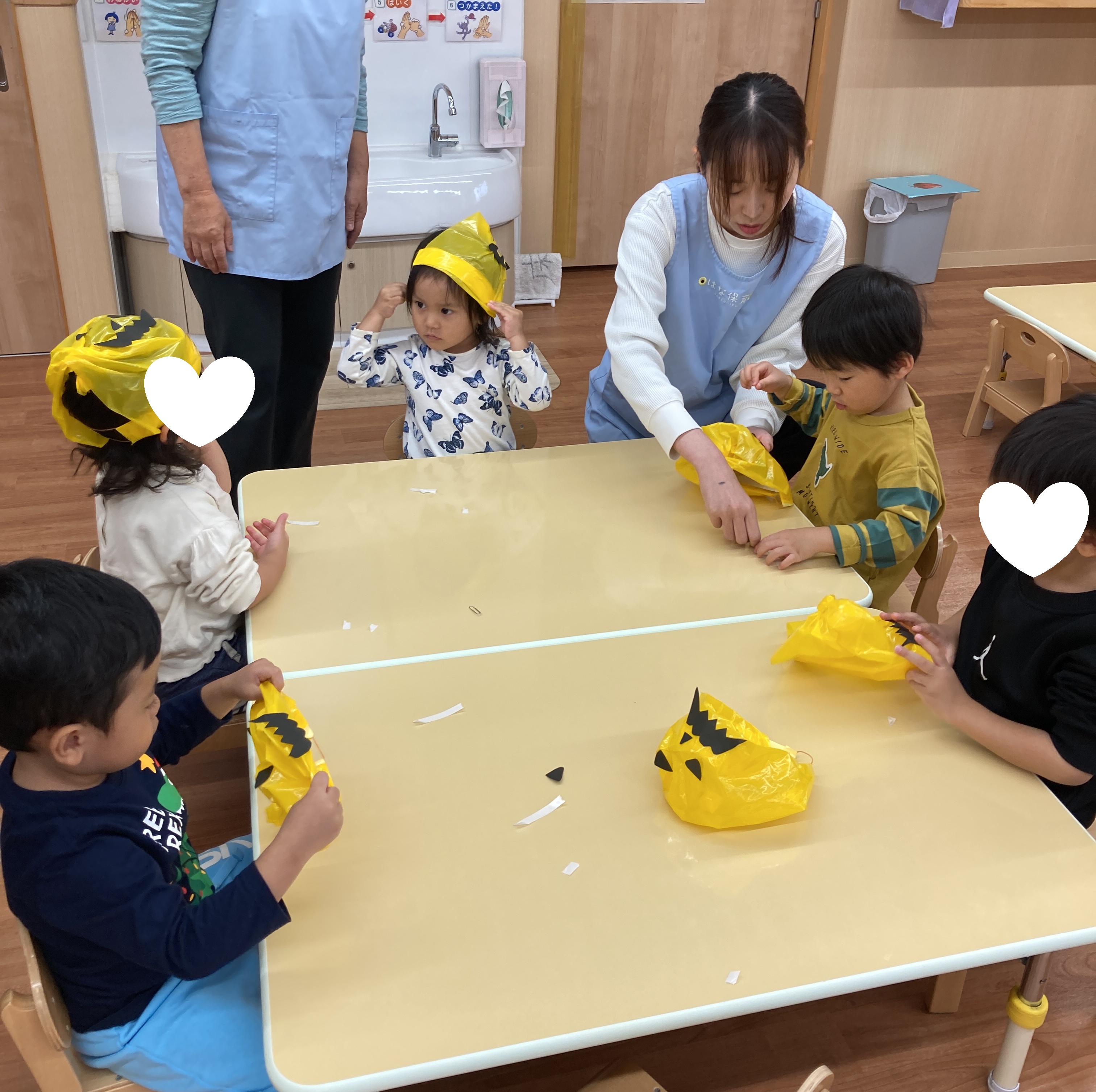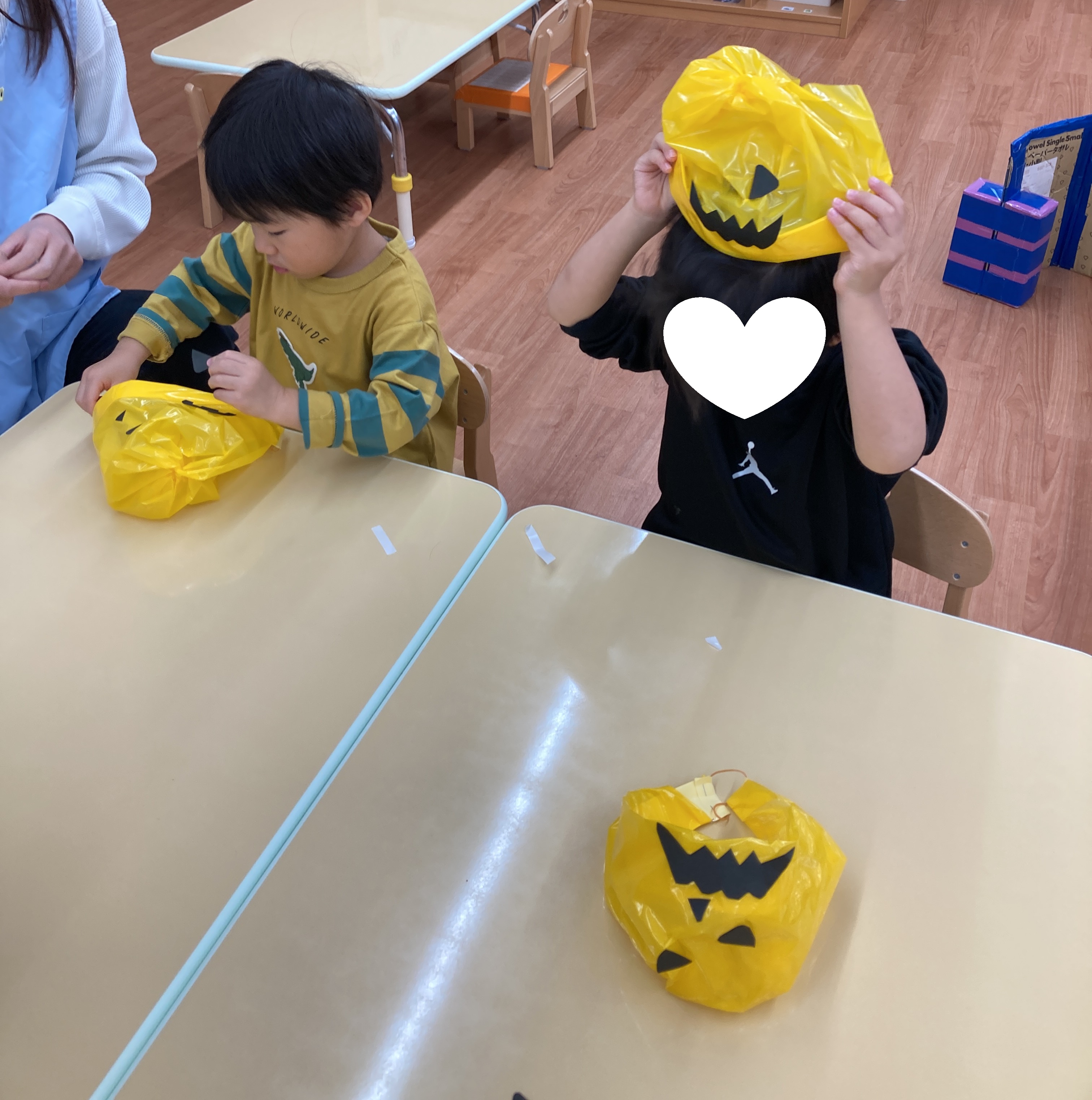 大きいお友だちは自分でかぼちゃの帽子を作りました!
