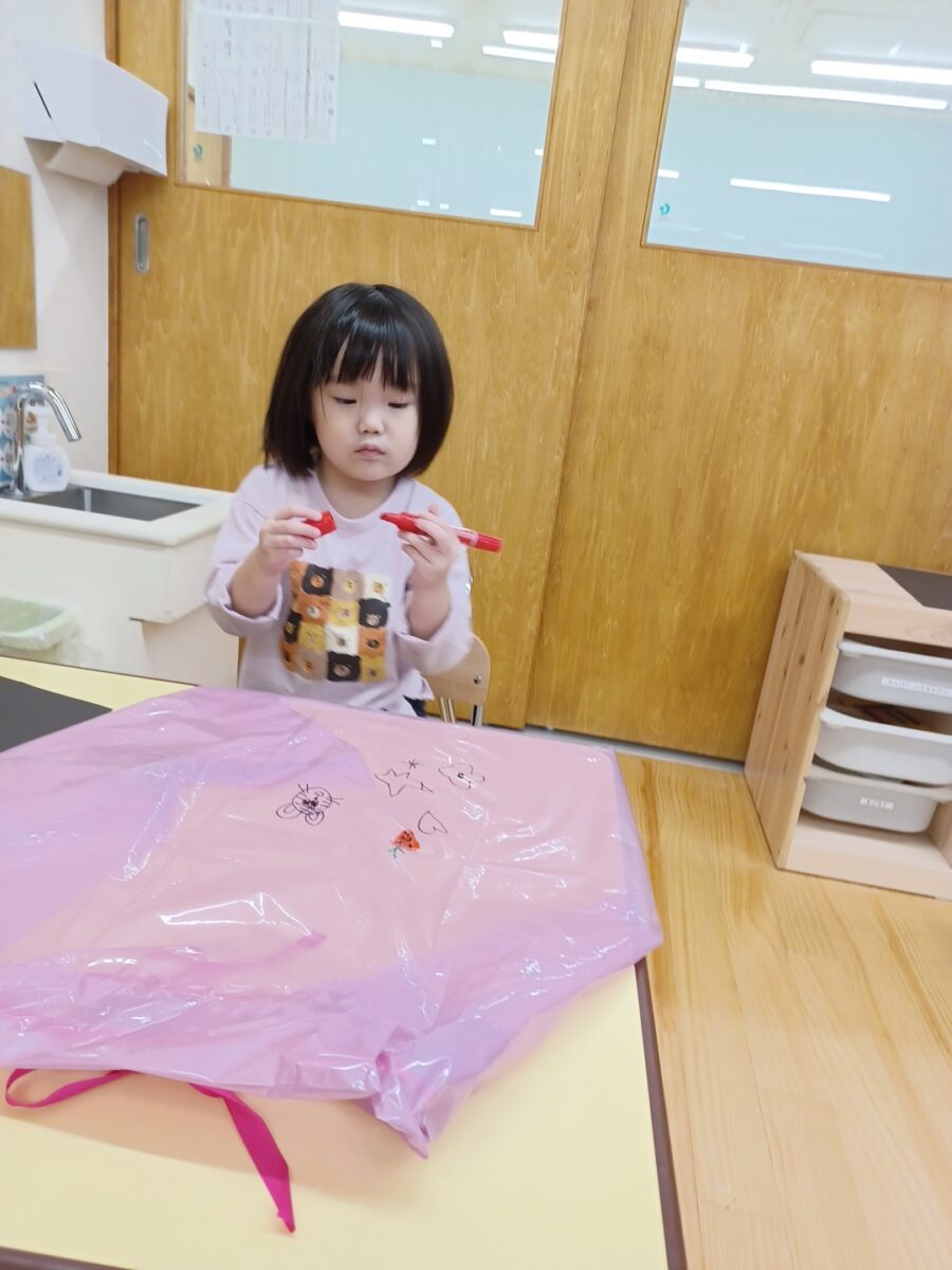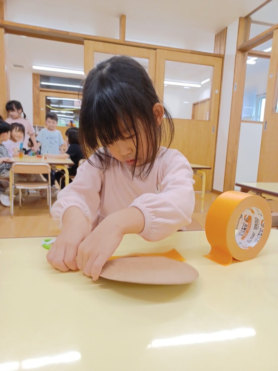 また、服が完成すると「帽子も作りたい!」「何か手に持つものもほしい」と様々な物を作っていた子どもたちでした![]()
