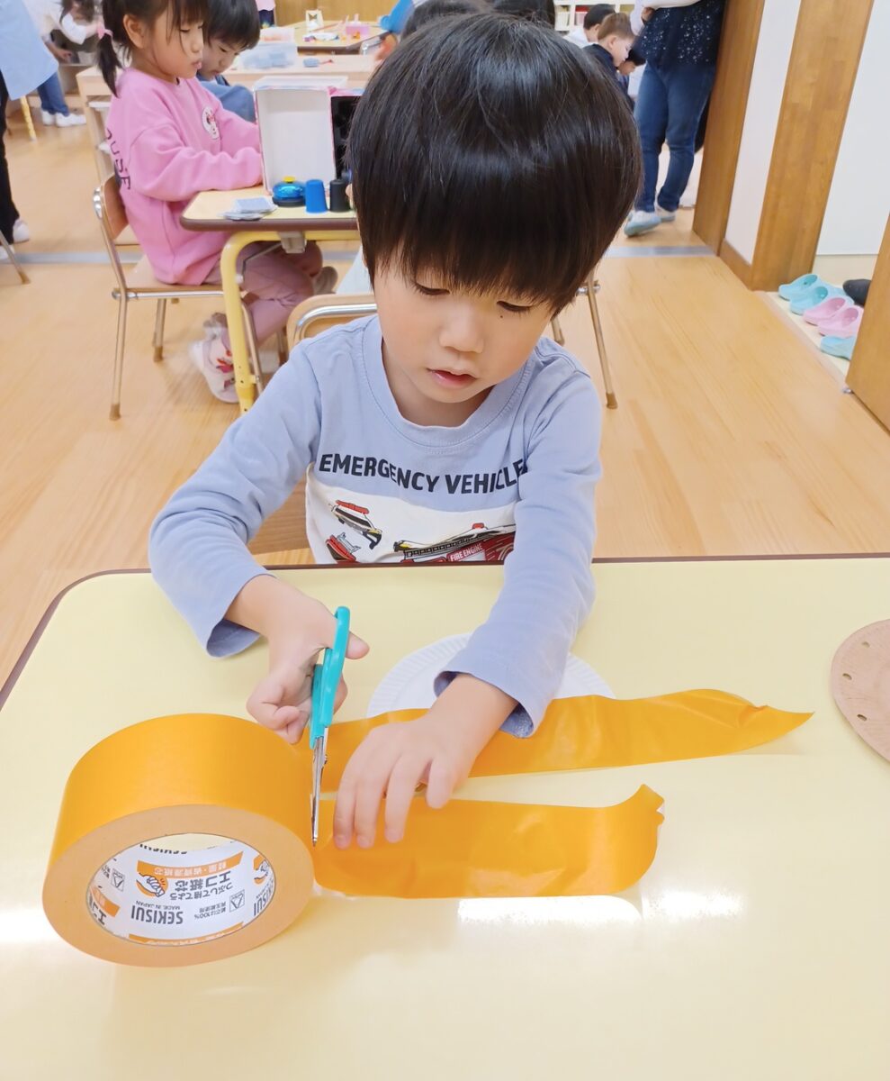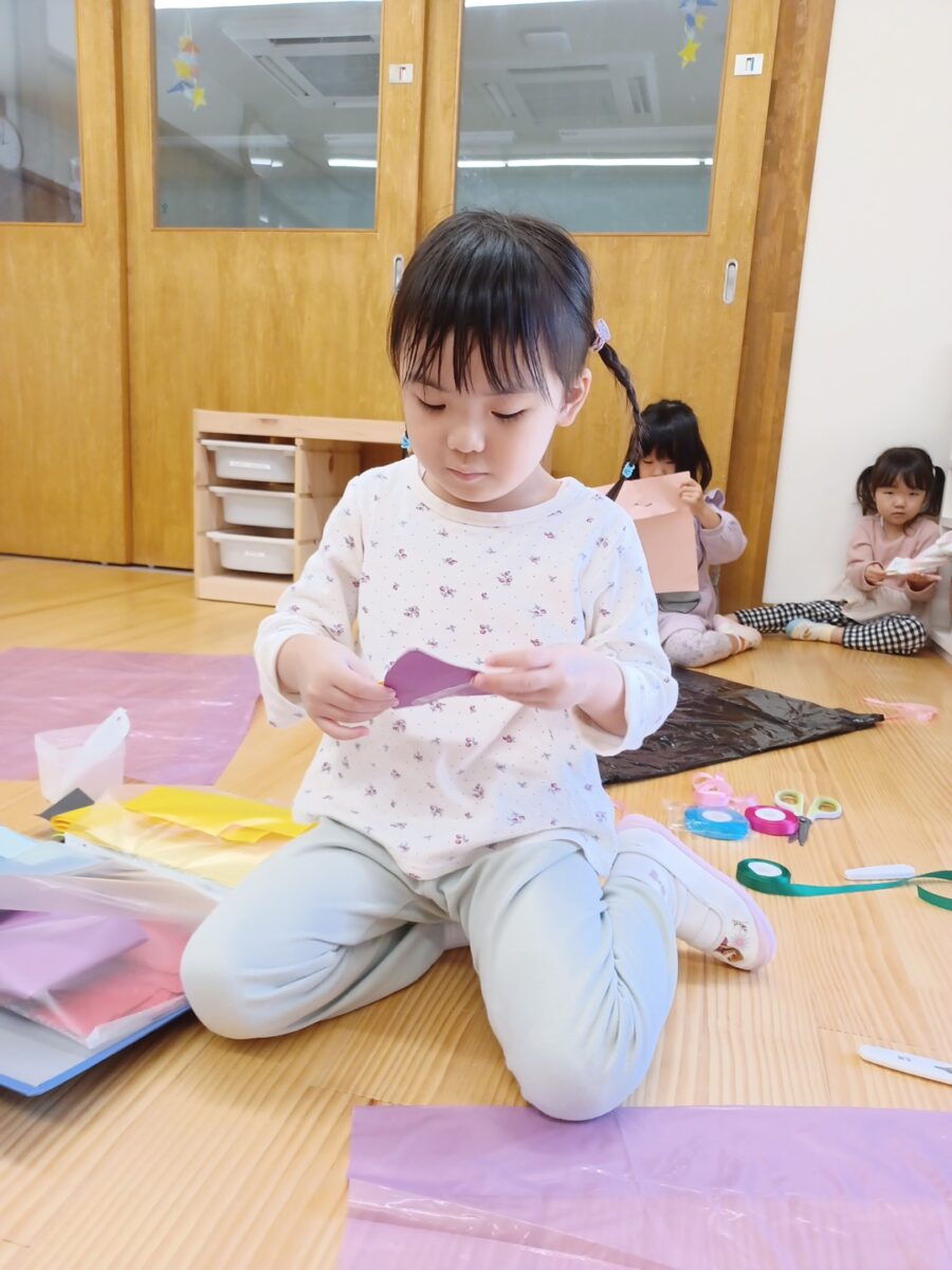 「もう作りたいもの決めてたよ!」「ハートたくさんつけるんだ」と作りたいものが決まっていて、ワクワクしている子どもたちもいました![]()