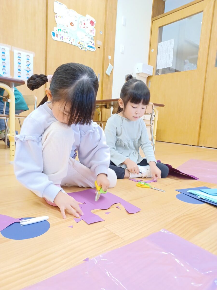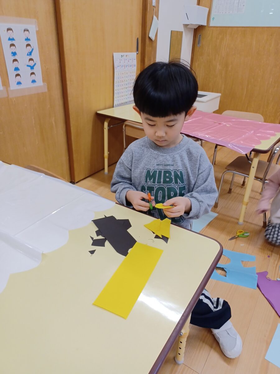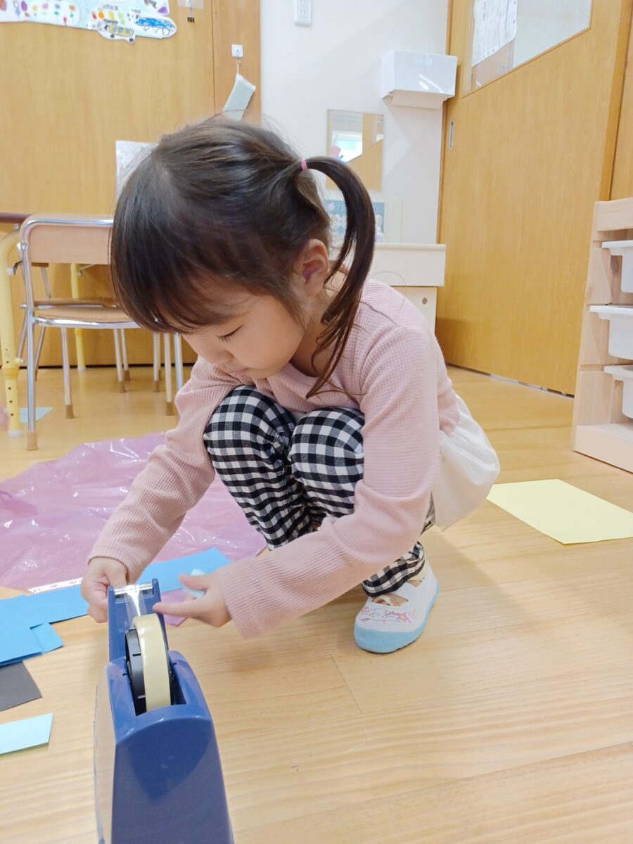 ちょきちょきハサミで切ったりテープで貼り合わせたりして、試行錯誤しながら進めていくととっても素敵な作品が完成しました![]()