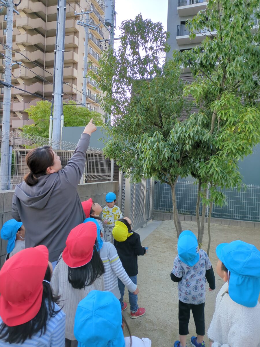 保育園にどんぐりの木がありますが、実をつけるのにはまだ早い、誰かが公園から拾ってきたのかな…と思っていたのですが…