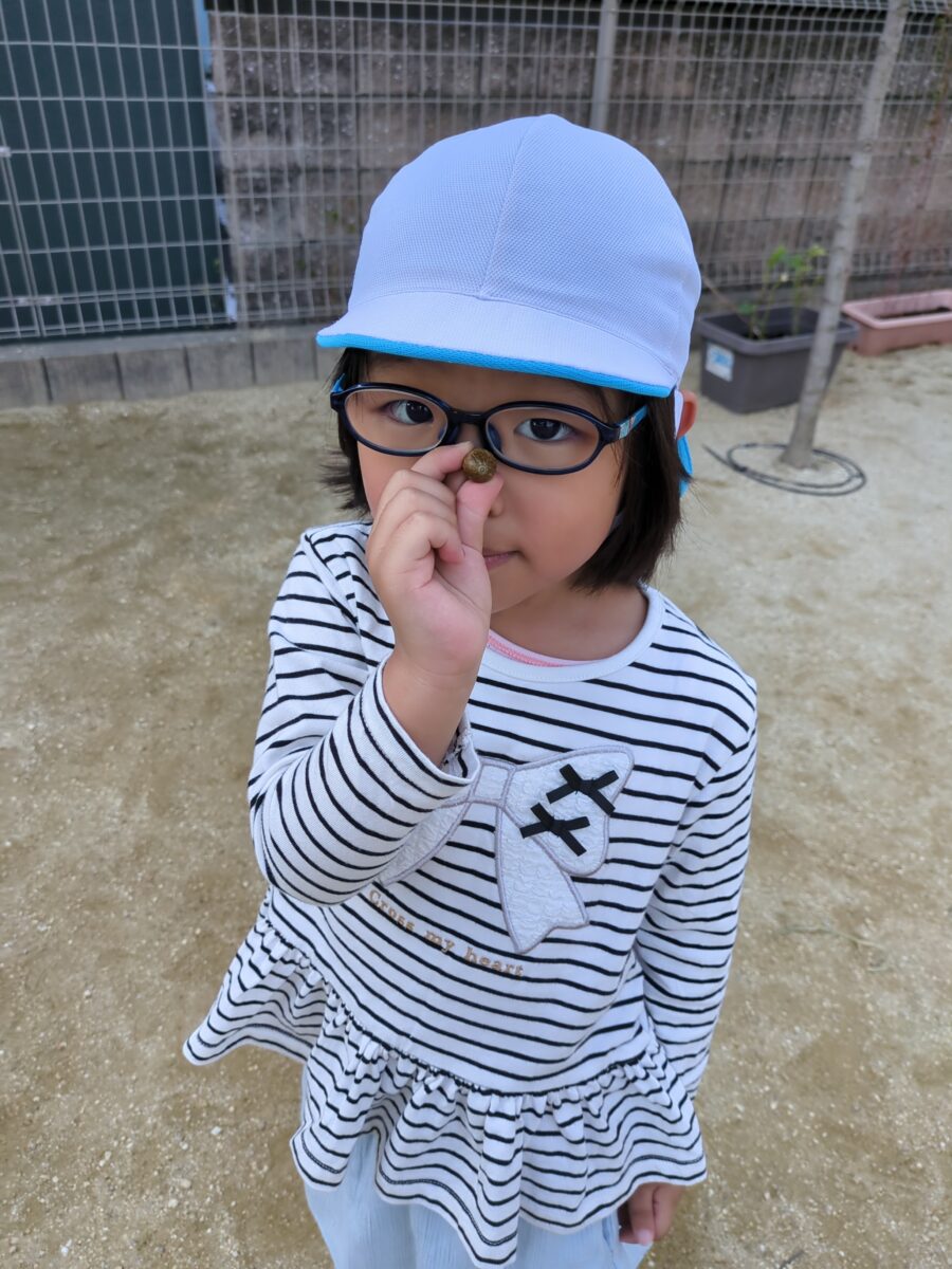 最近、園庭で「どんぐりあったよ!」と、嬉しそうに見せてくれる子どもたち![]()