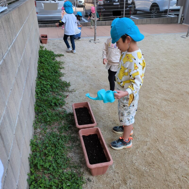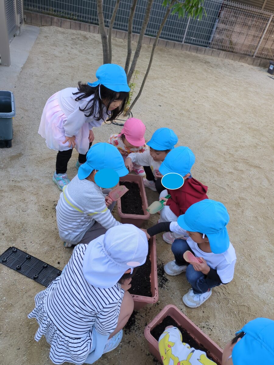 子どもたちは「おおきくなあれ」と声をかけながら、楽しそうに作業していました。