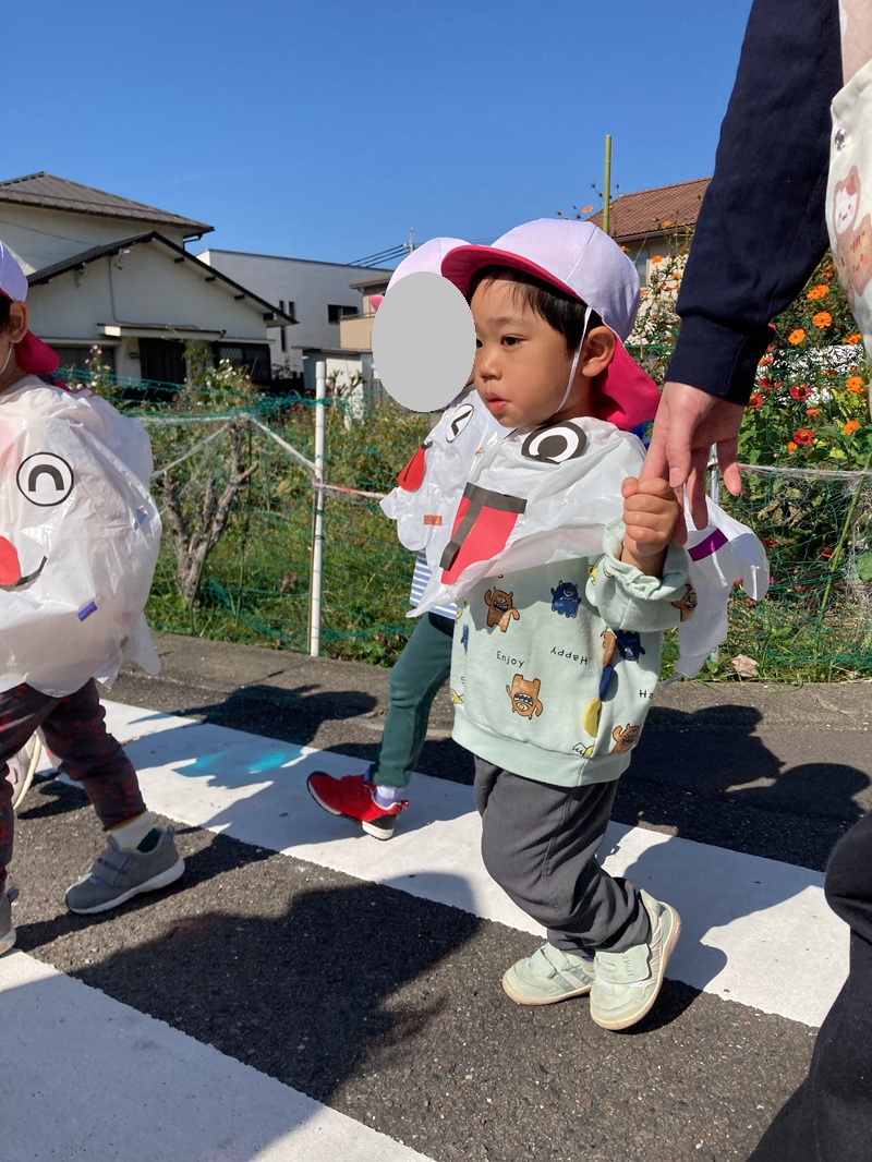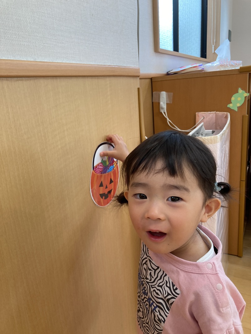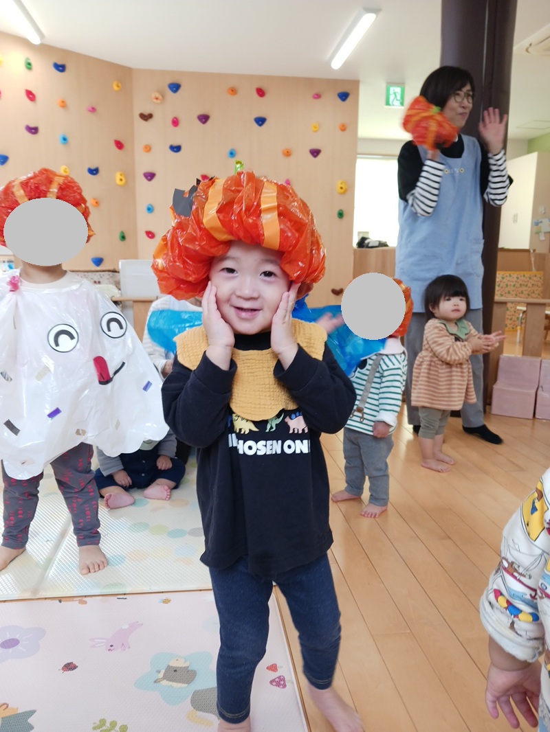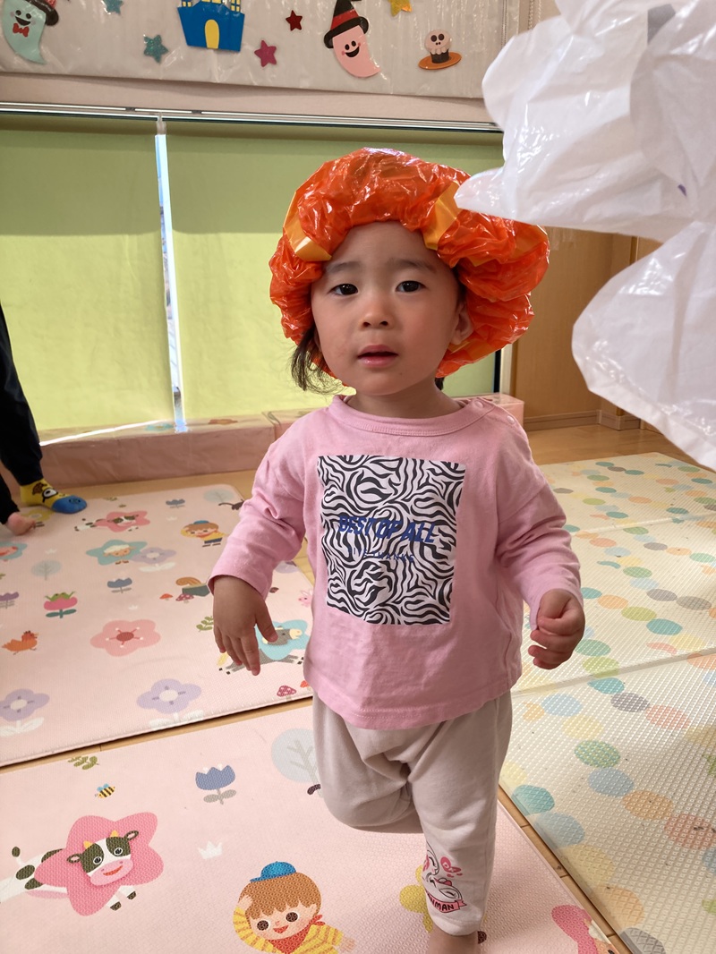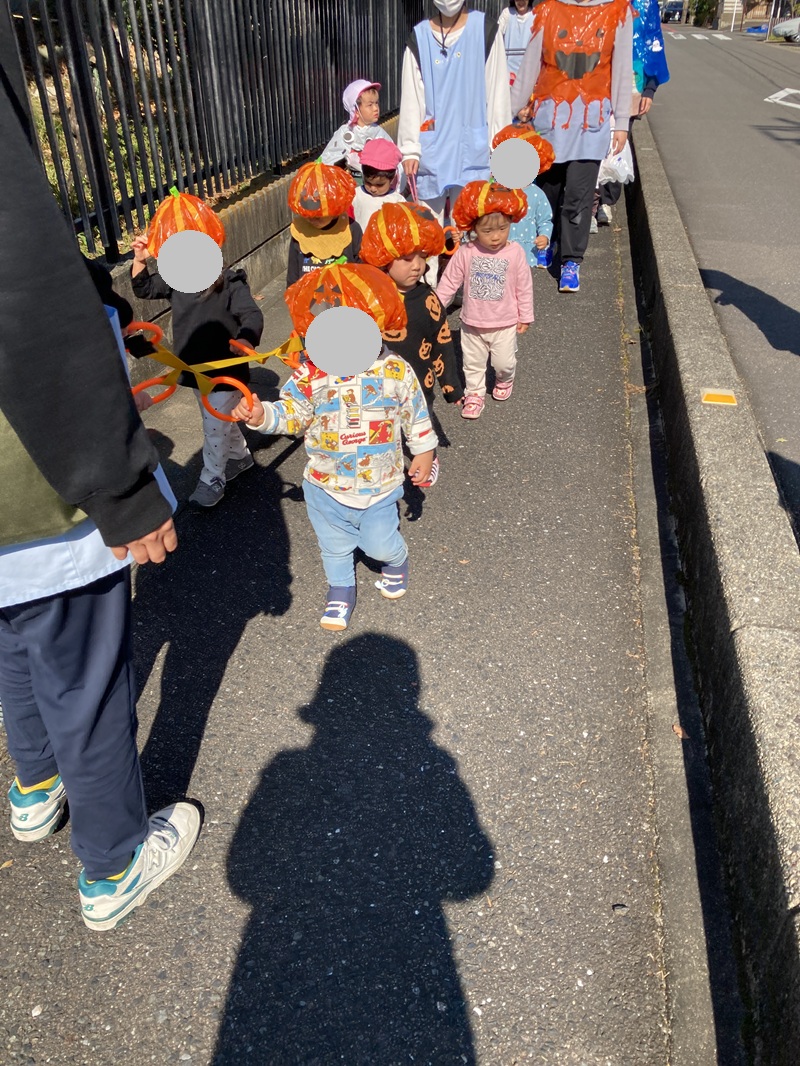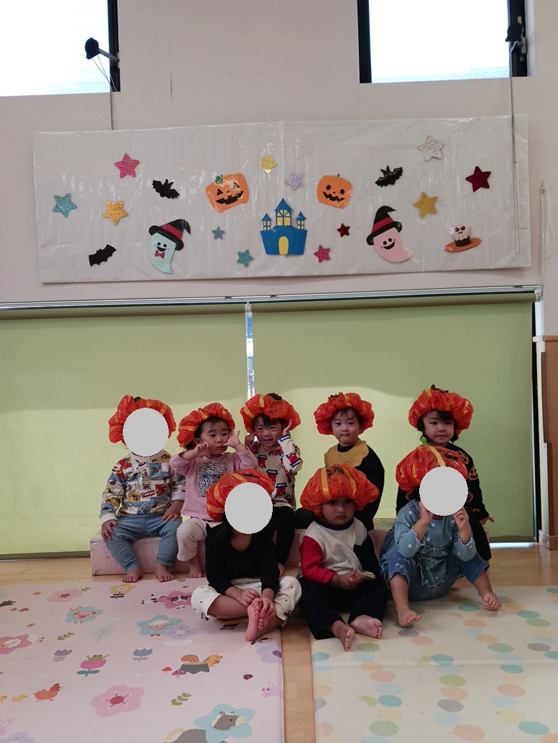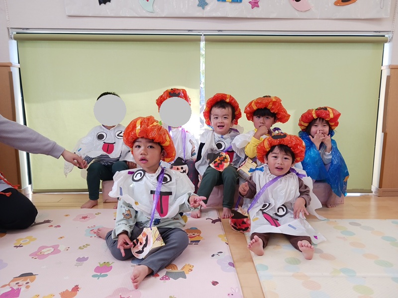 2歳児は帽子と衣装やマントを身につけてすっかりハロウィンの仲間入りです🎃![]()