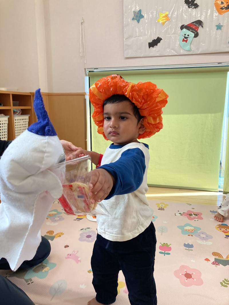 楽しく踊った後は、おばけから一人ひとりにお菓子が配られました🍬🍫