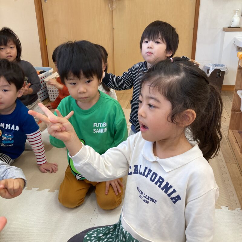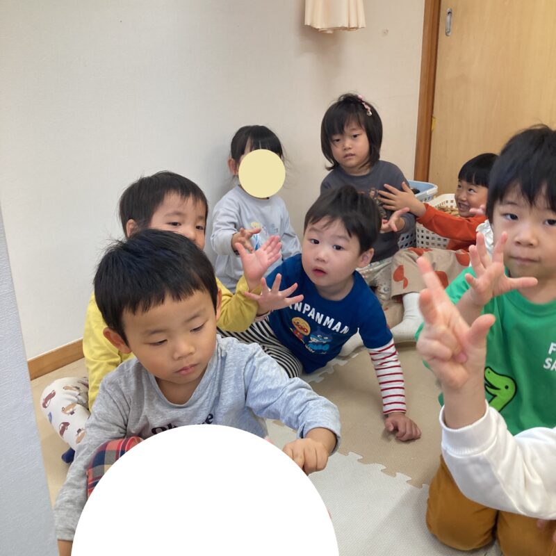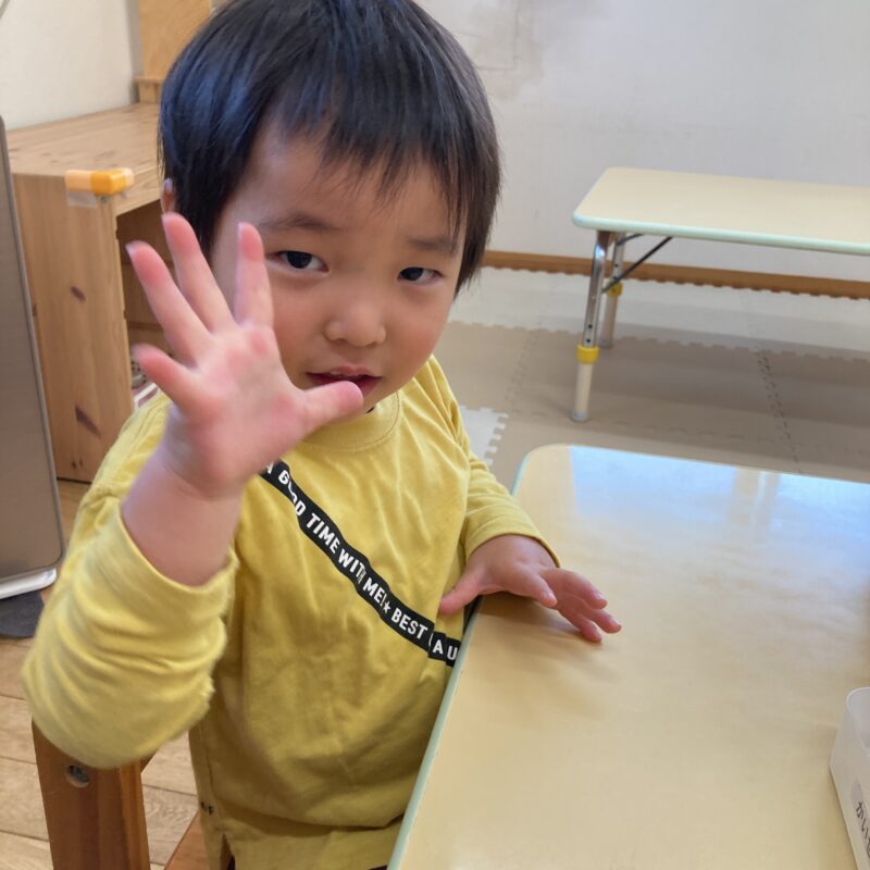 「黄色にお父さん指で~」「指はこう」と、とても真剣に確認をしていました![]()