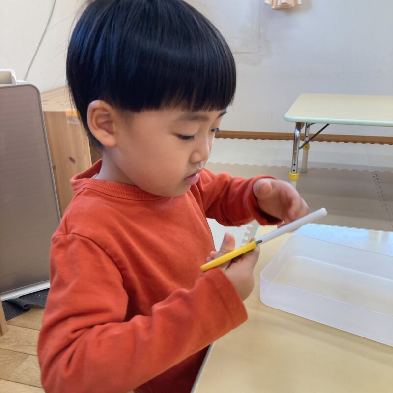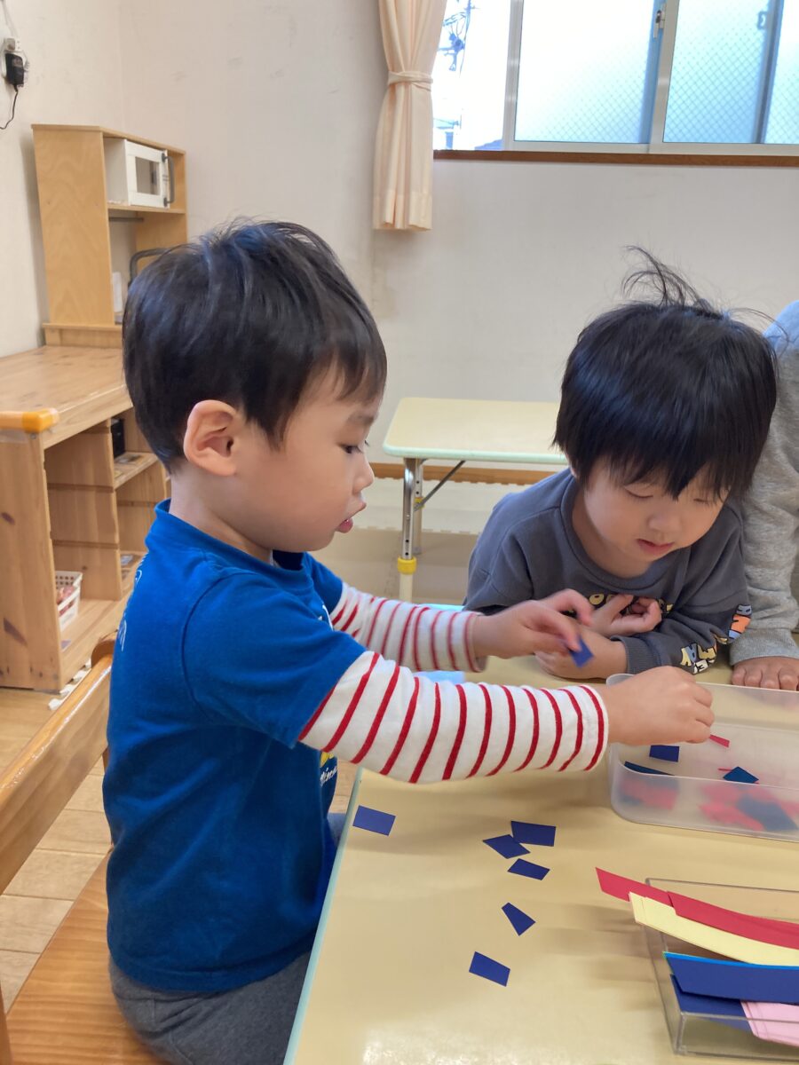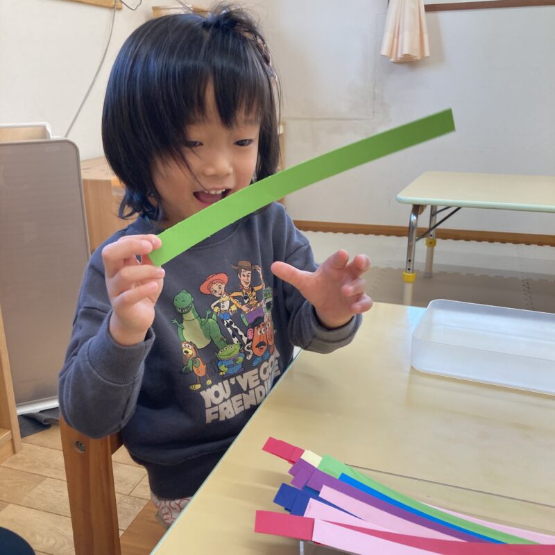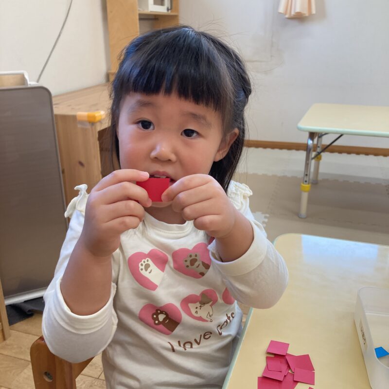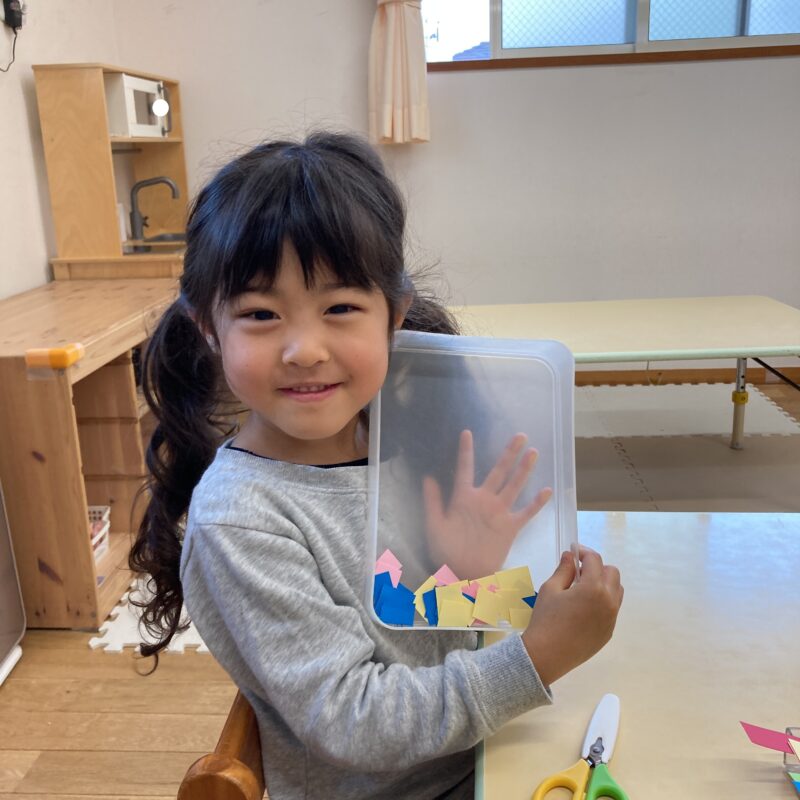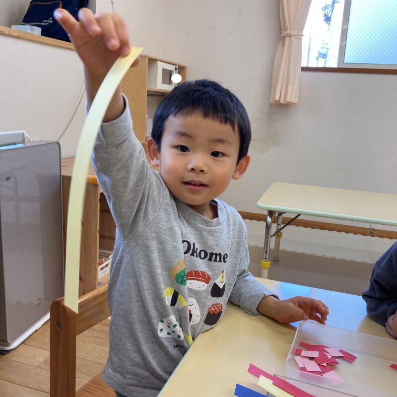 「できたー!」と、切れた画用紙を嬉しそうに見せてくれました![]()