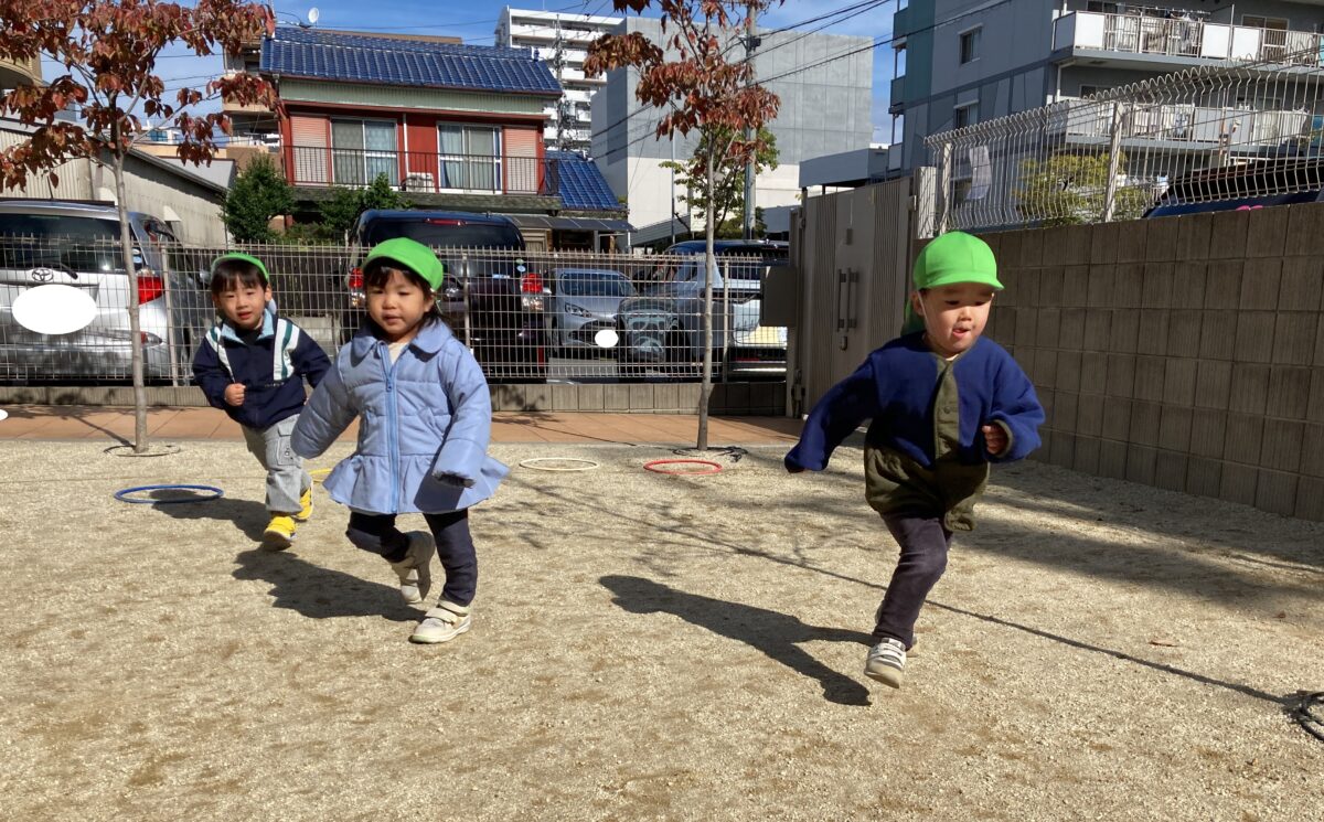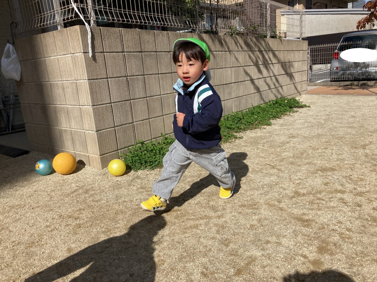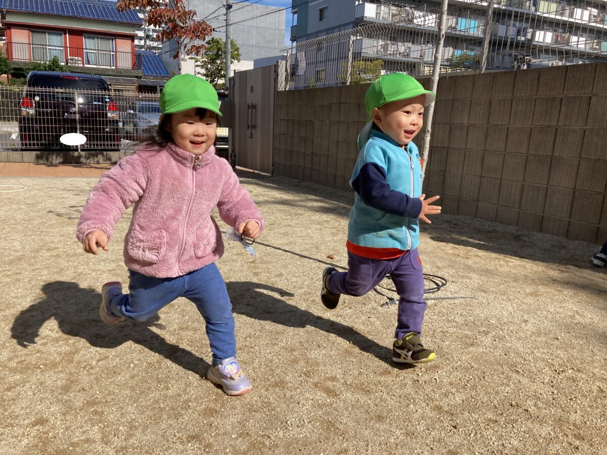 心地よい秋の風が吹く中、園庭では元気いっぱいに遊ぶチューリップ組(2歳児)さんの笑い声が響いています![]()