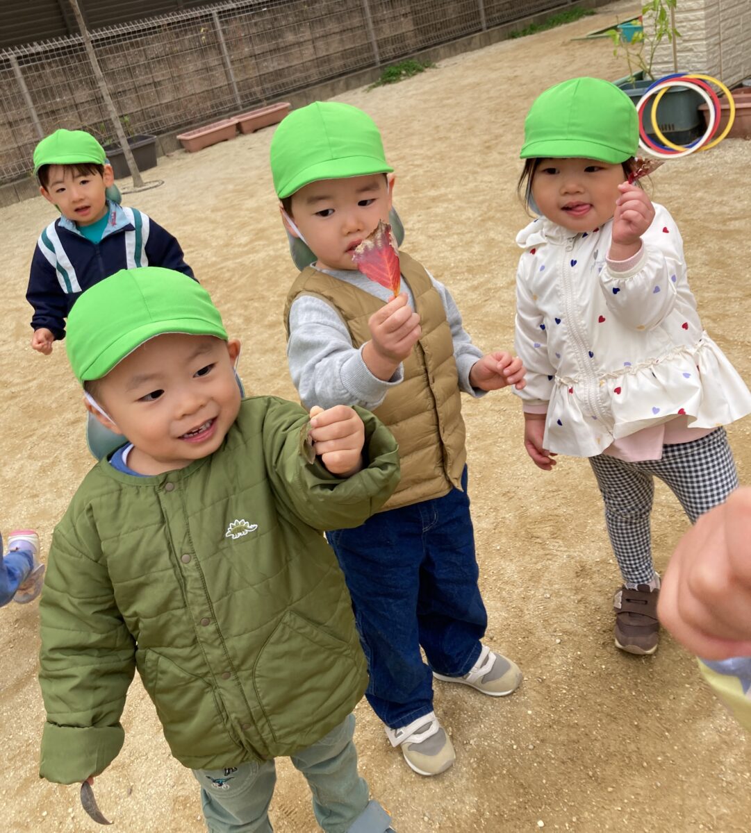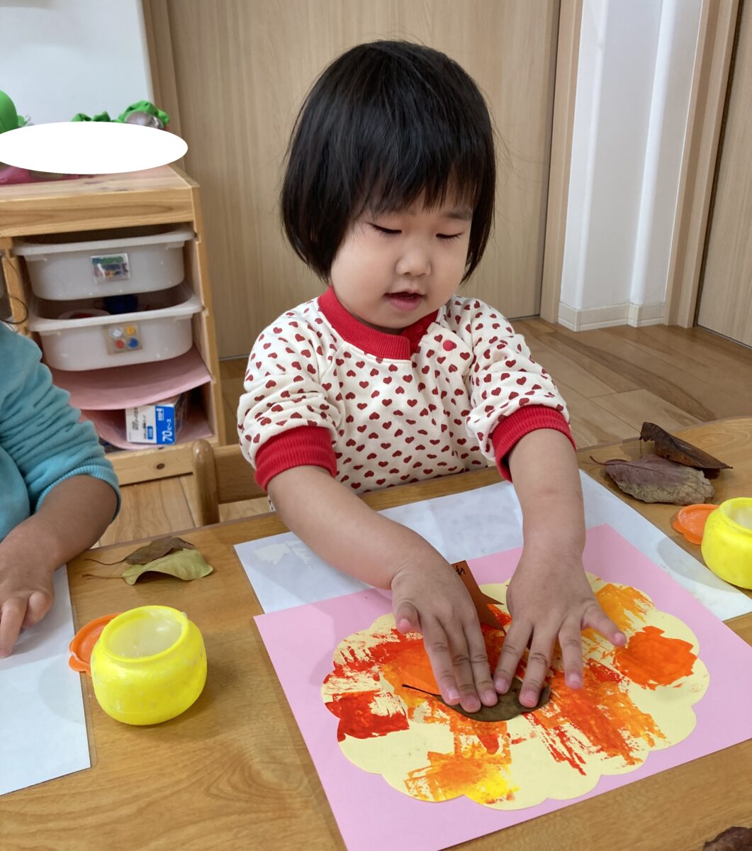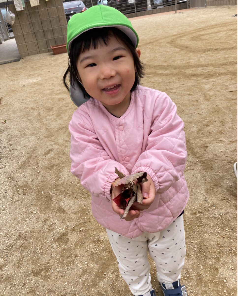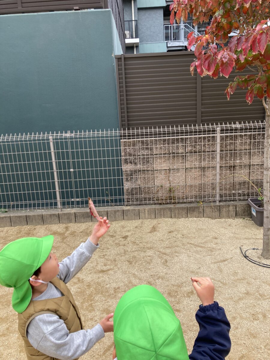 落ち葉を見つけると「あかいのあった!」と嬉しそうに拾い集めたり、