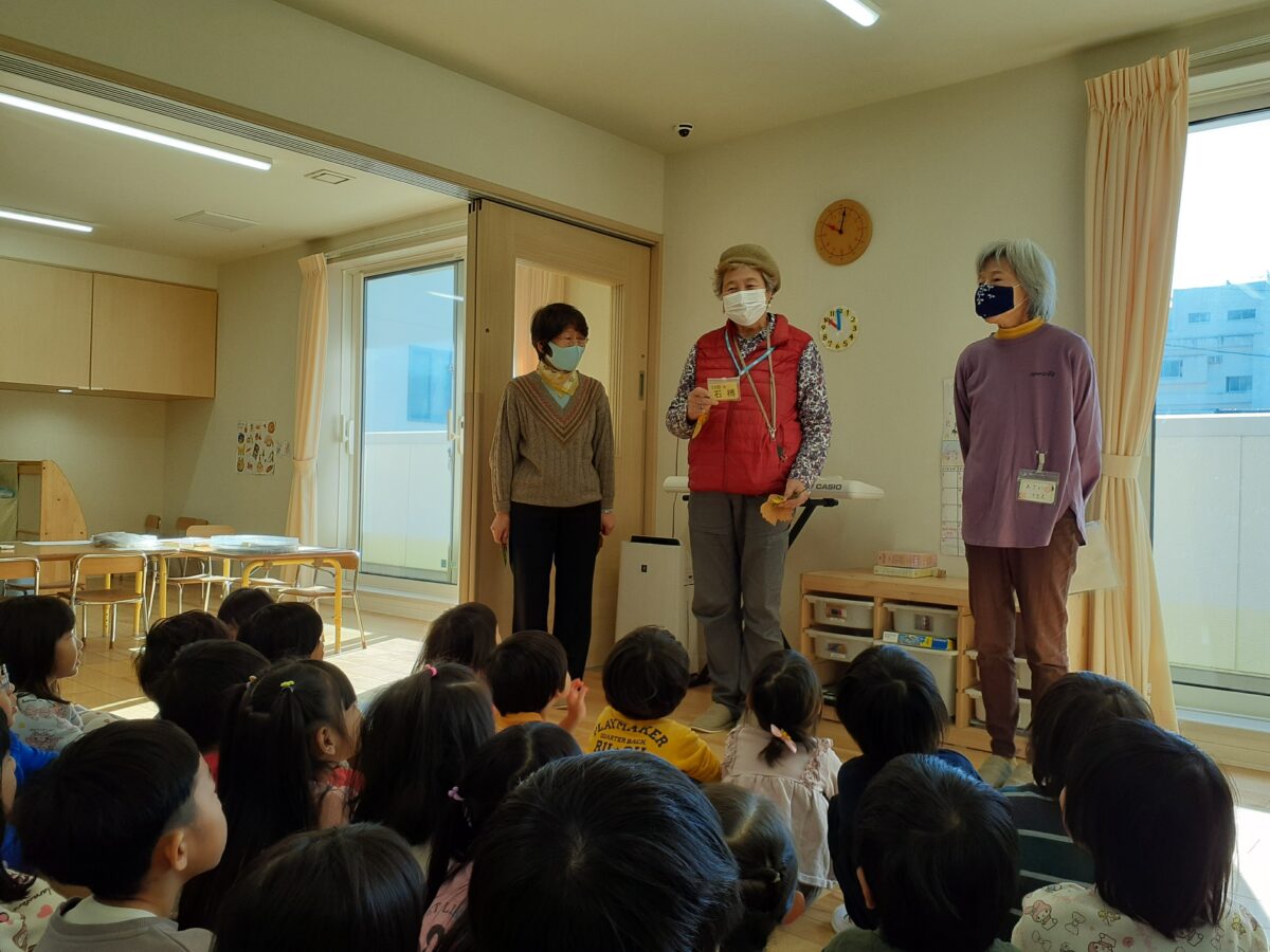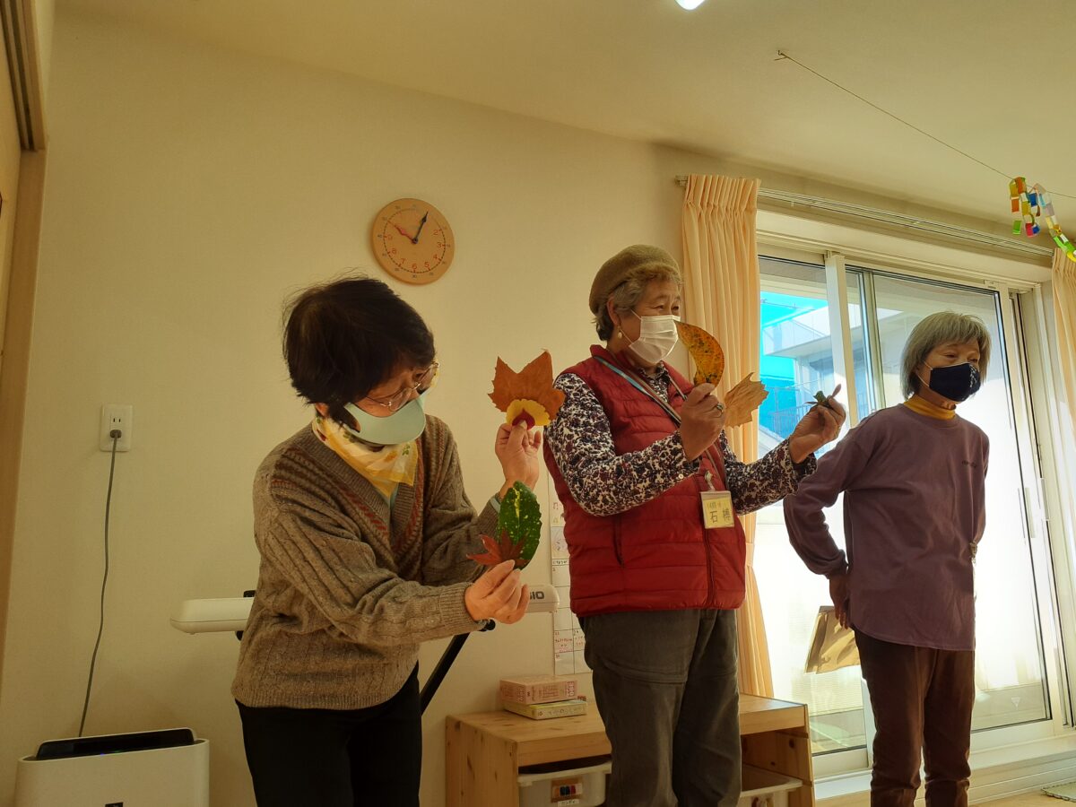 今日は名古屋市環境学習センターから環境サポーターの方に来ていただき、秋の自然物を使った遊びを教えて頂きました。