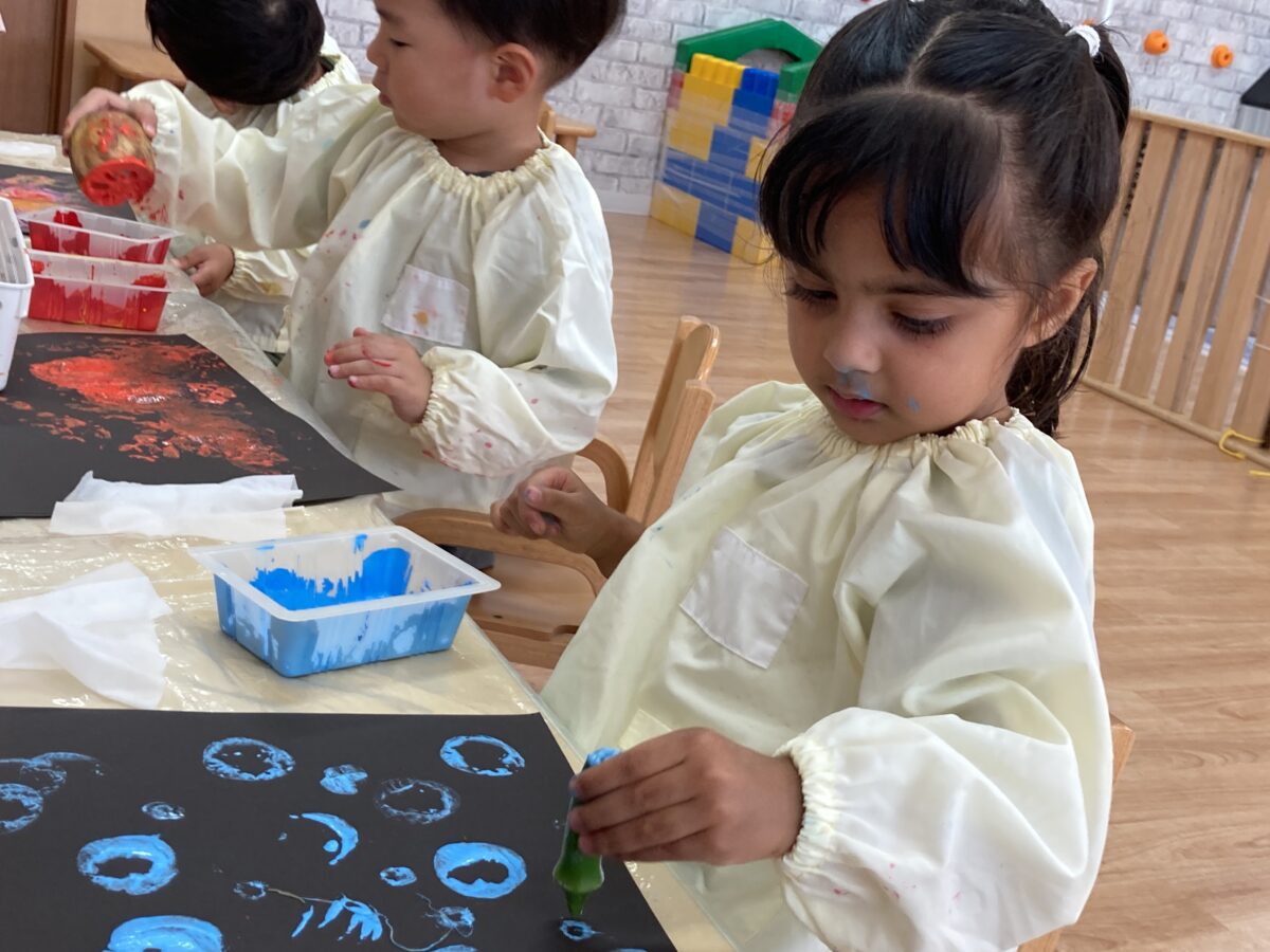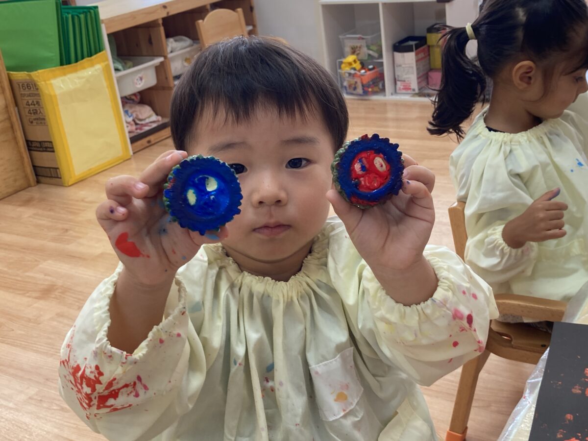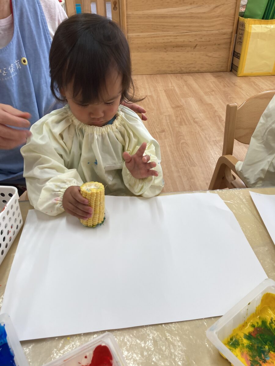 スタンプを重ねて花火のようにしたり、野菜の形を見て楽しんだりと集中してスタンプをしていましたよ🍠
