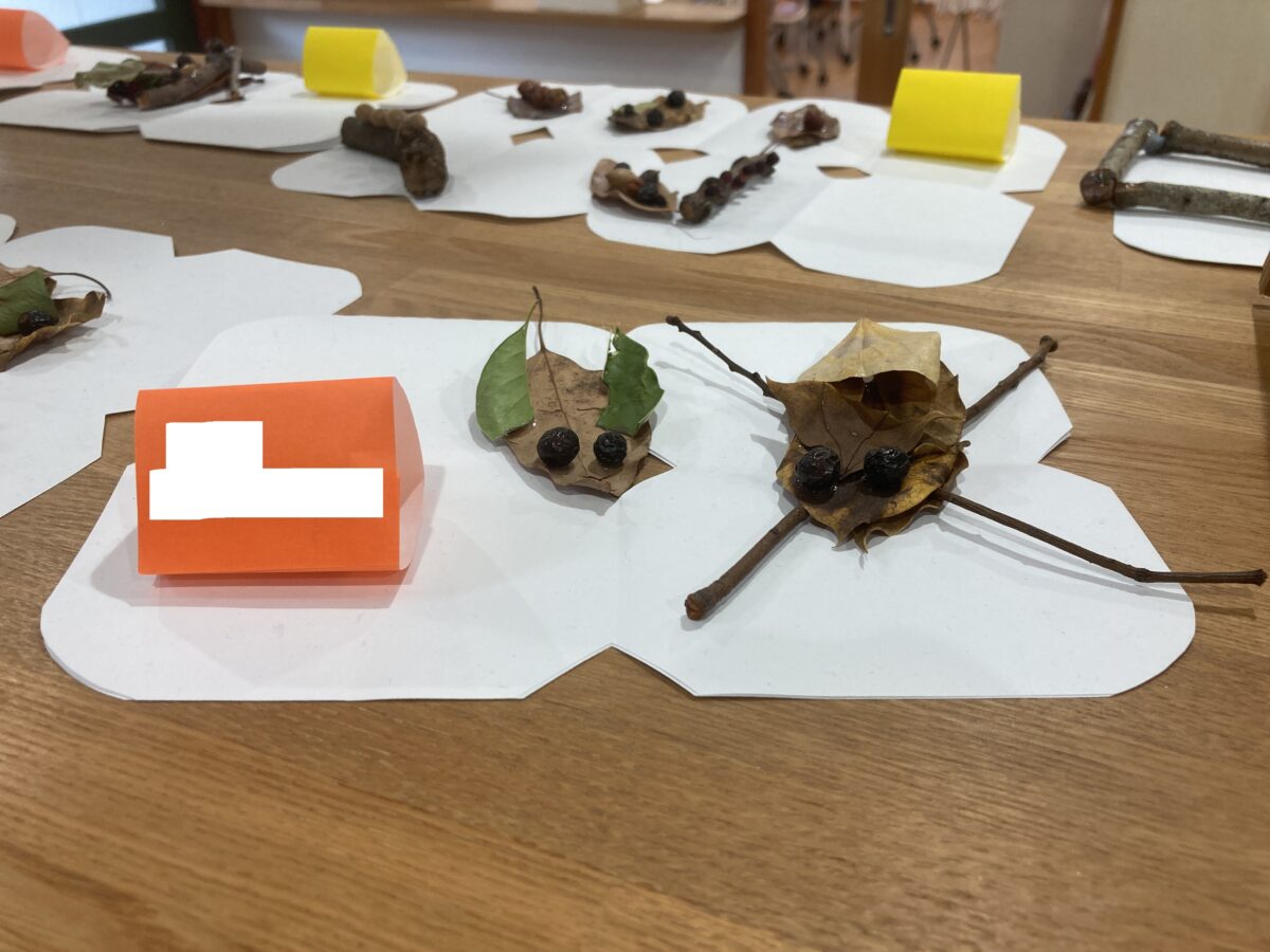 秋の自然で魚とアメンボを作ったよ🍂