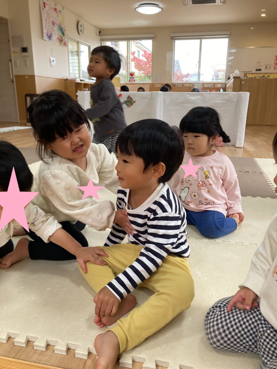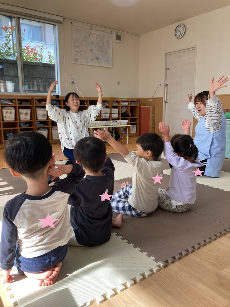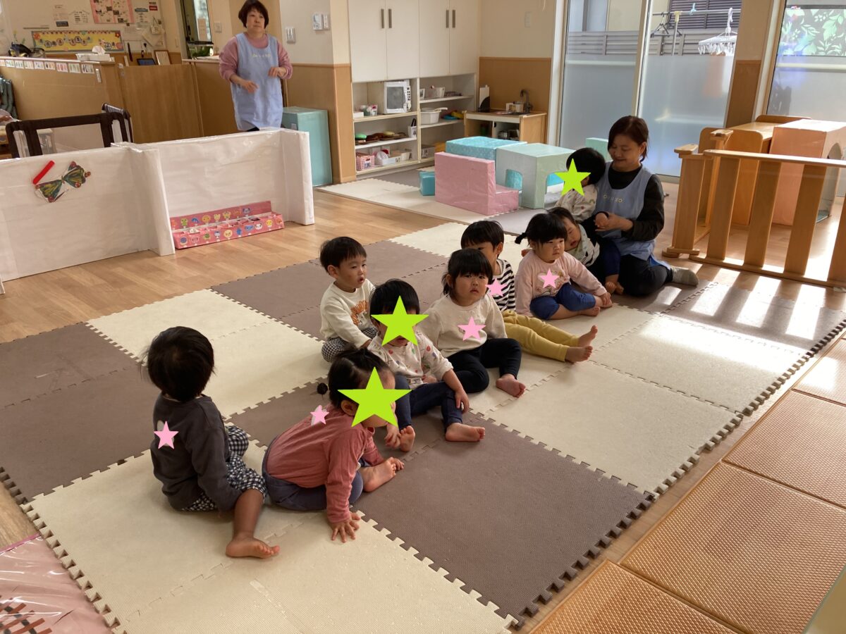 リトミックの先生が来るとみんなワクワクで座って待っています