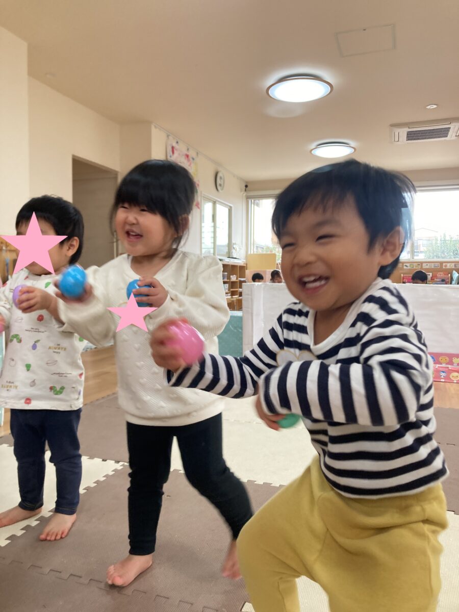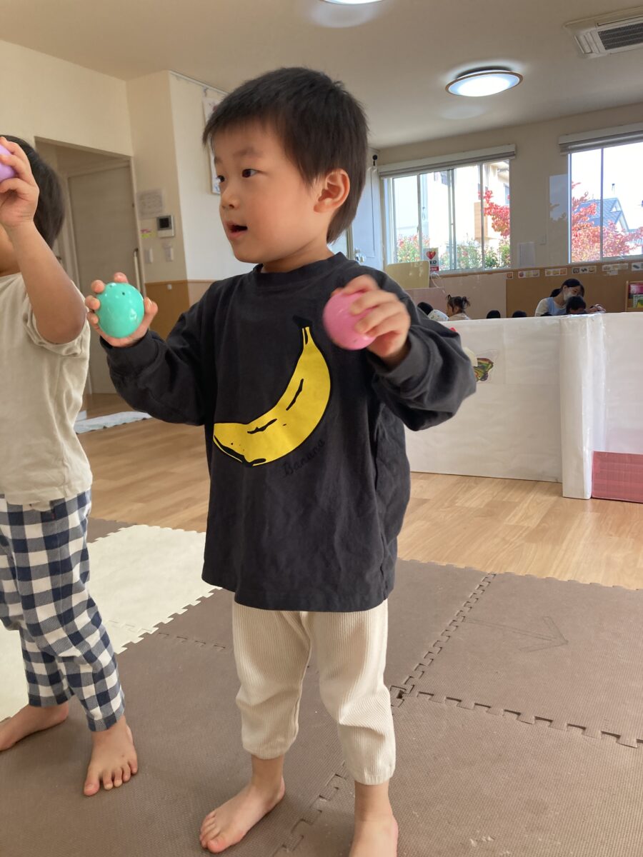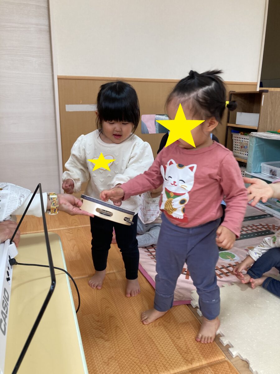 お友だちと一緒に叩いてみたり、たくさん叩いてみたりと楽しんでいます