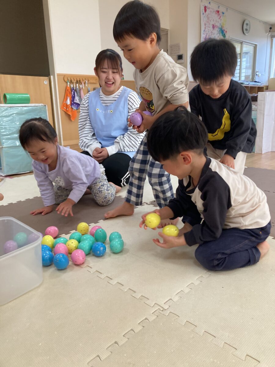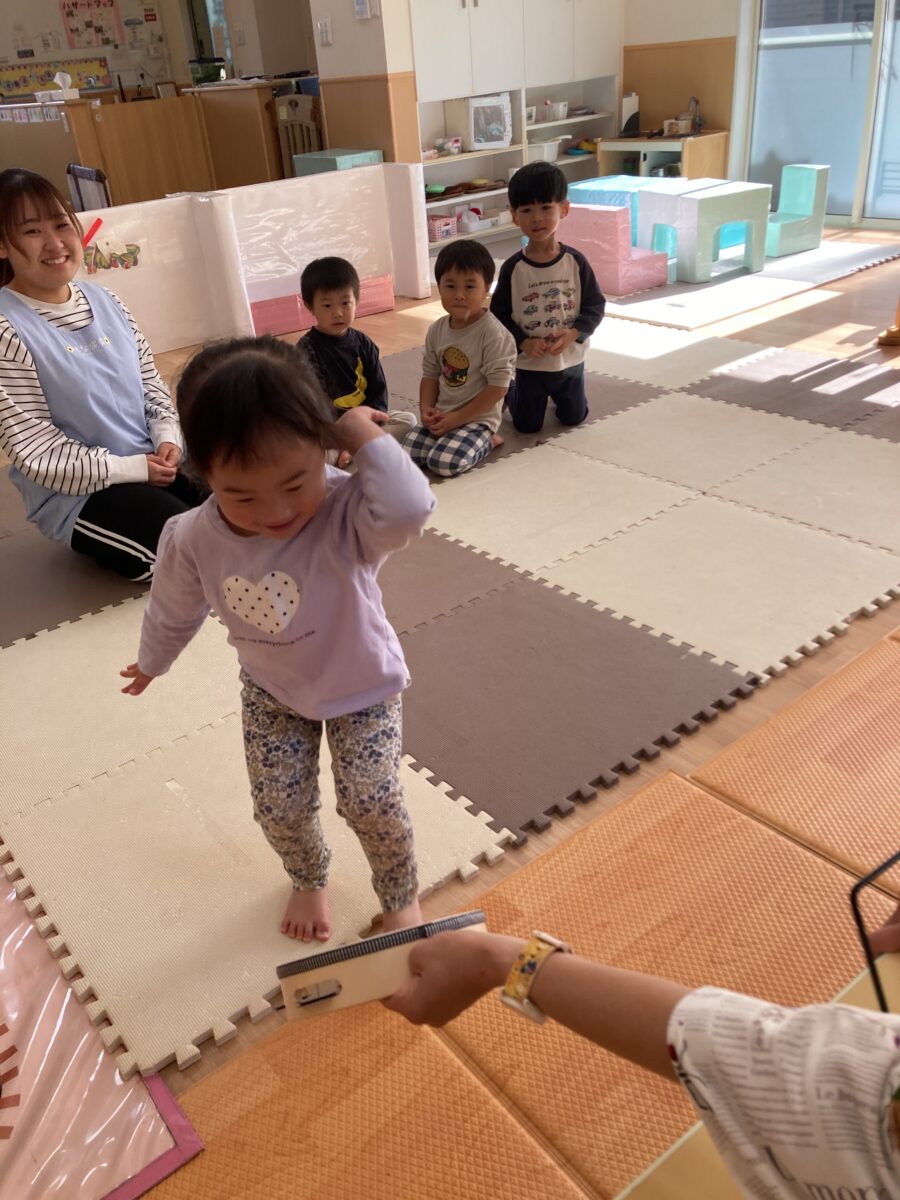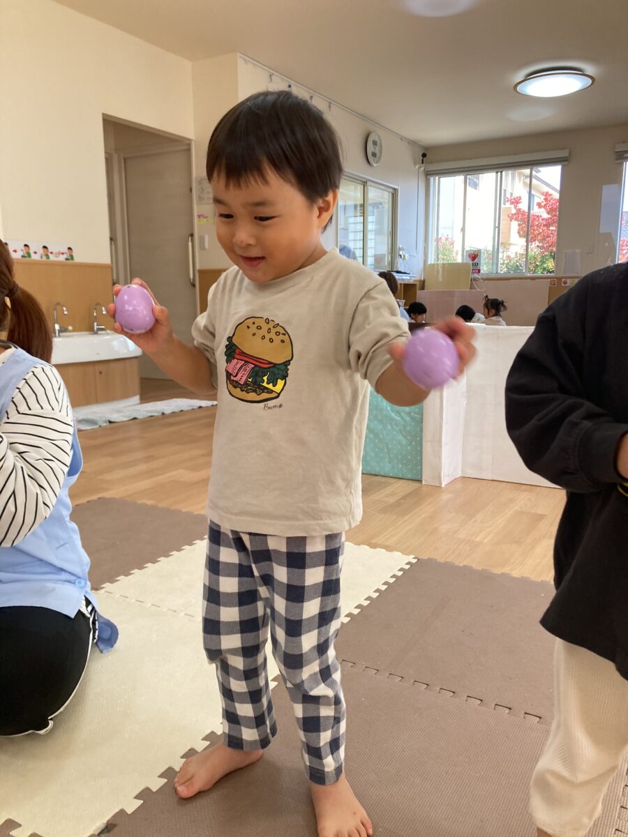お友だちと一緒に叩いてみたり、たくさん叩いてみたりと楽しんでいます