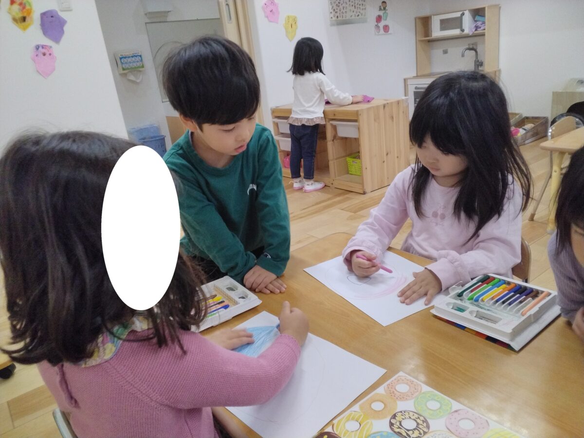 言葉を交わしながら、自分たちで理想のドーナツを描いていきました