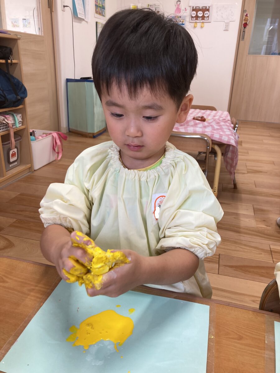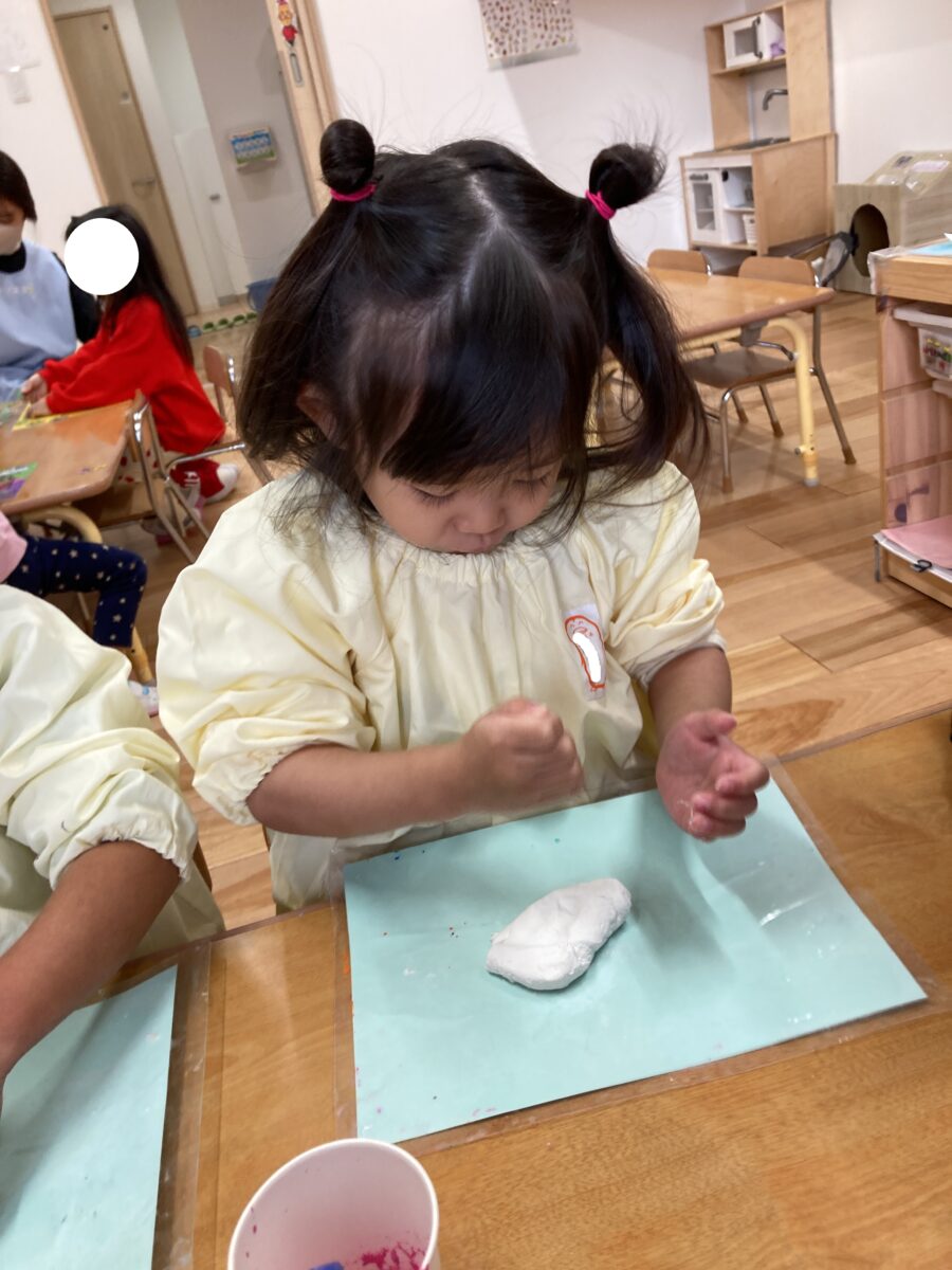 絵の具が入ると、紙粘土の感触も一気に変わり