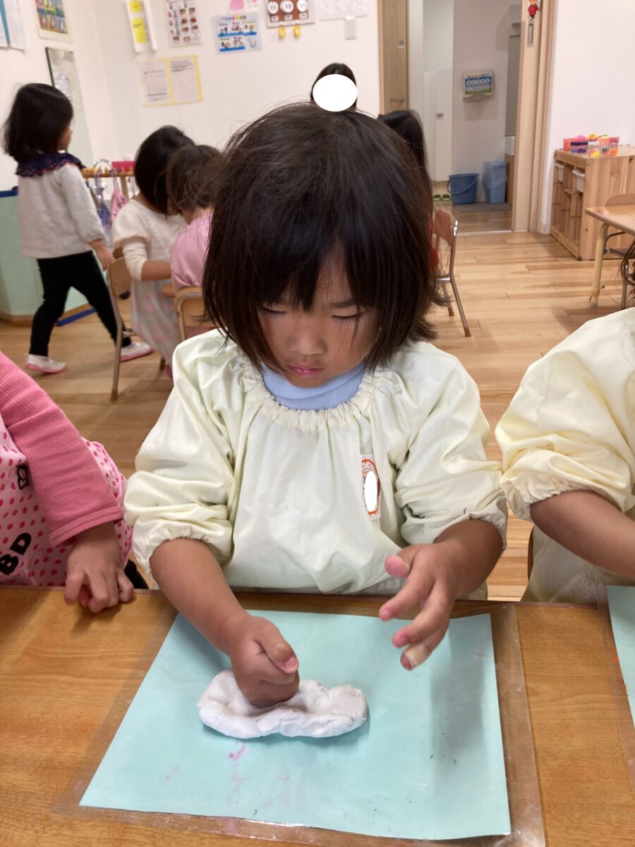 紙粘土を見ると、お月見会で作ったお団子のことを思い出して