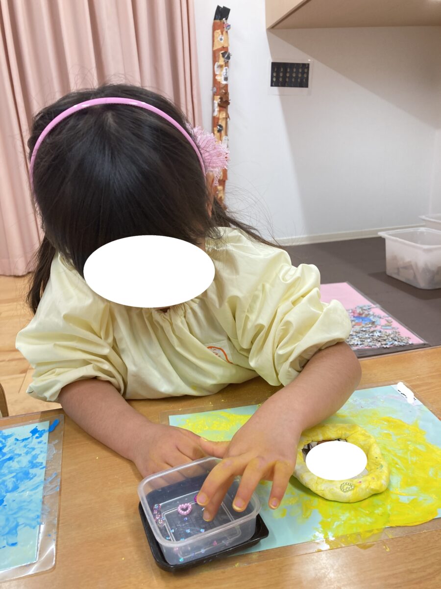 ドーナツの形に丸くした後は、選んだ飾りを使ってトッピング