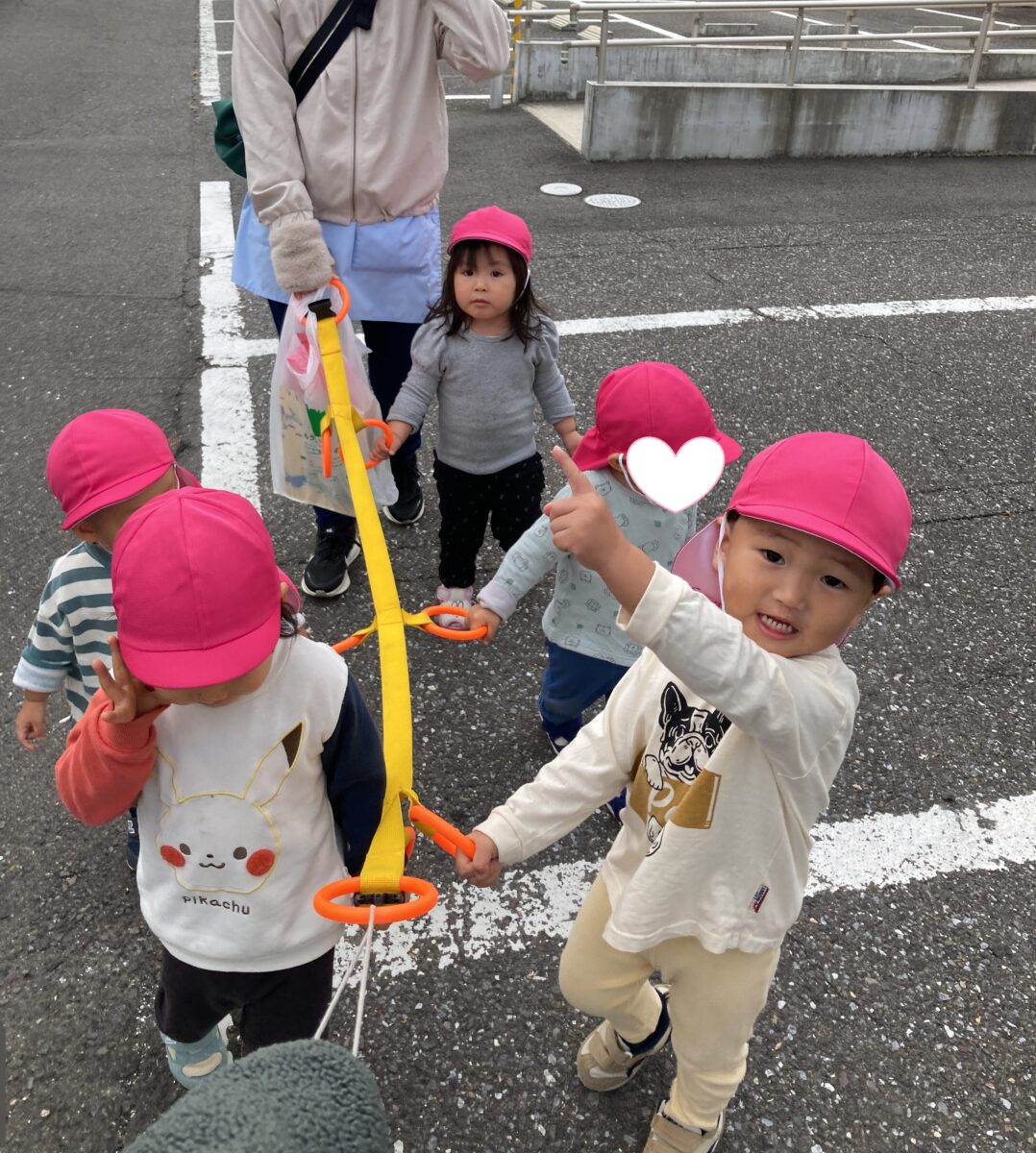 大きいお友だちは、手繋ぎで歩けるようになってきました