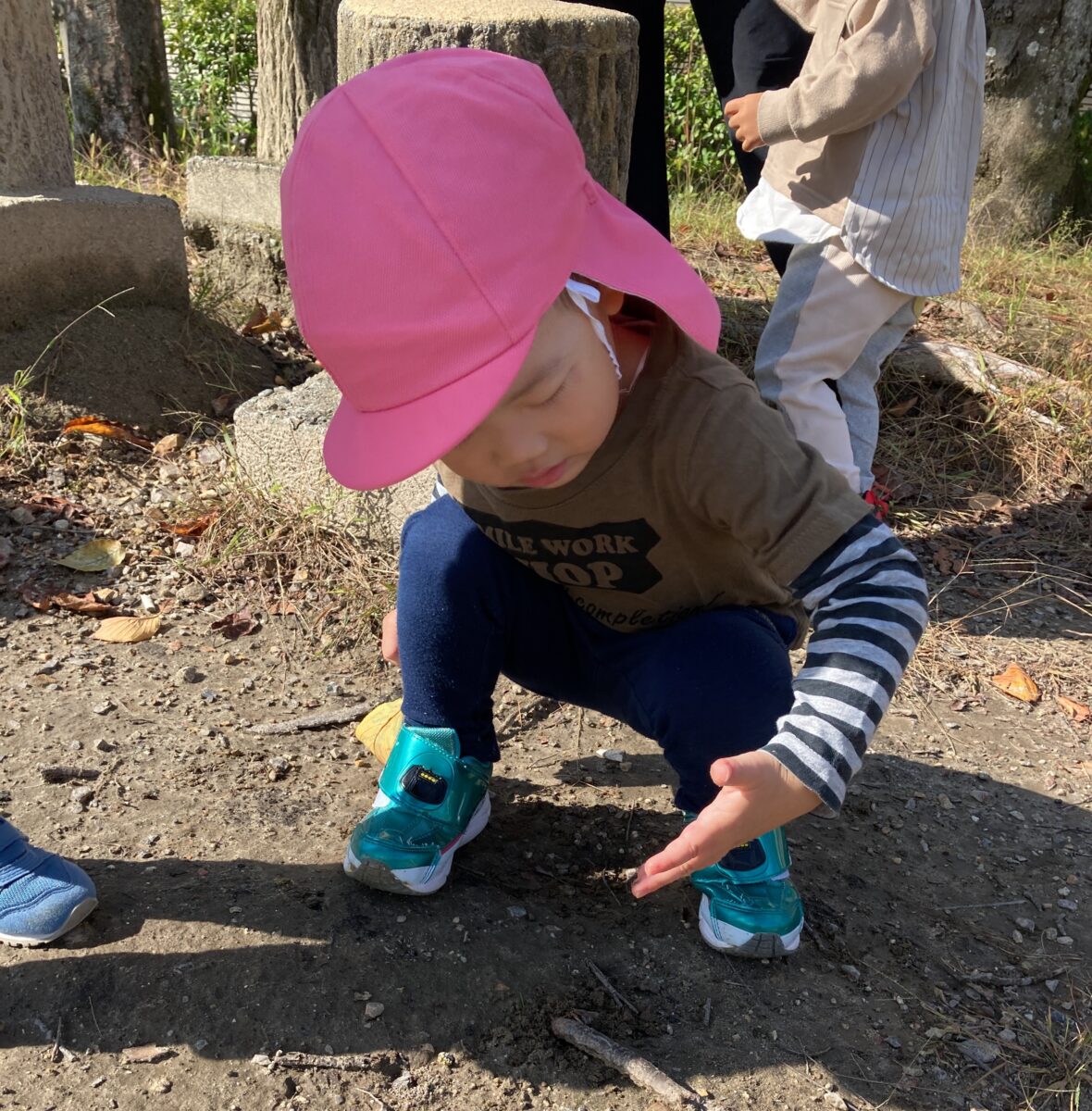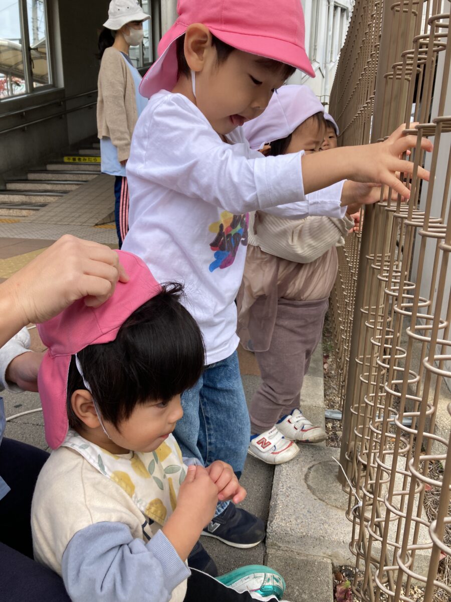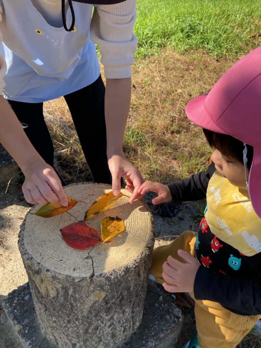 外遊びではいくつか公園に遊びに行き、友だちと一緒に走ったり秋の自然物を観察したりしています![]()