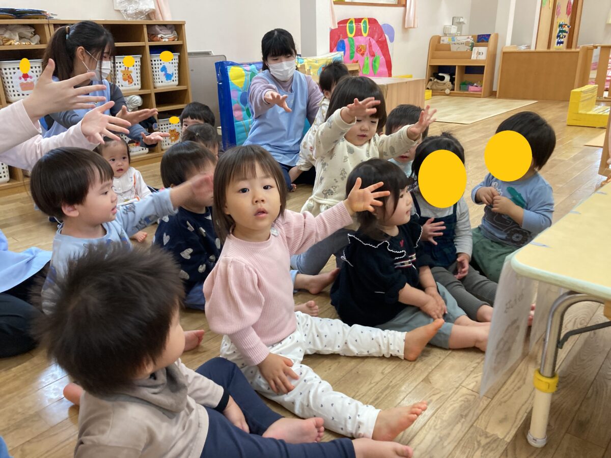 普段からクラスでもやっているので嬉しそうに先生の真似をしながら手遊びを行っていました