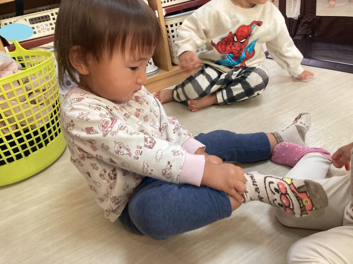 靴下も自分で履けるようになってきたきぐみさんのお友だち![]()