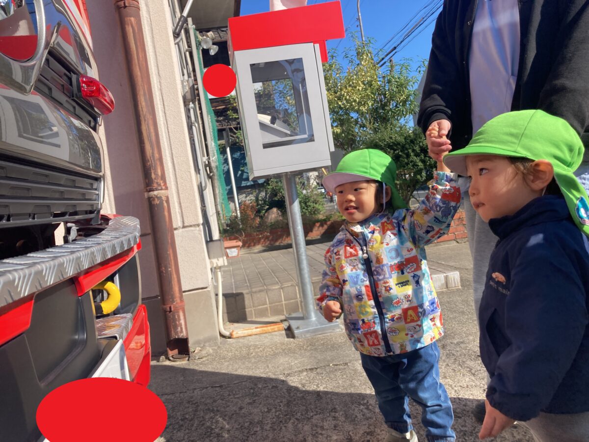 「かーん、かーん!」や「ピーポーだ!」と言ってとっても嬉しそうに見ていました![]()