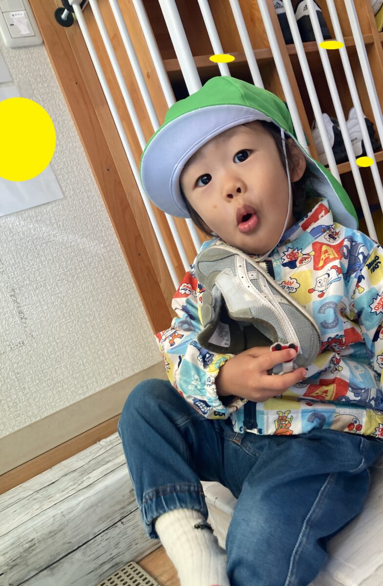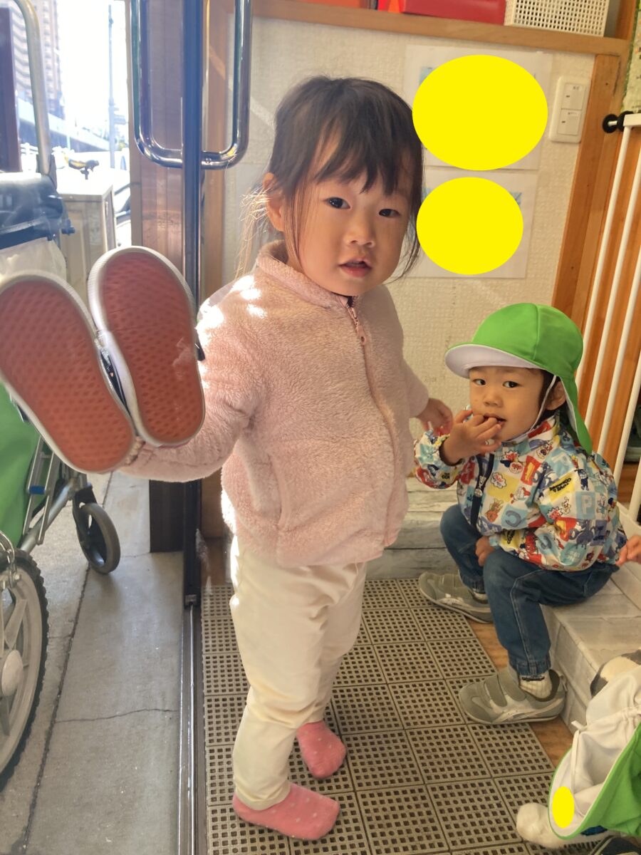 お散歩から帰ると靴も靴下も自分たちで頑張って脱いでいます![]()
