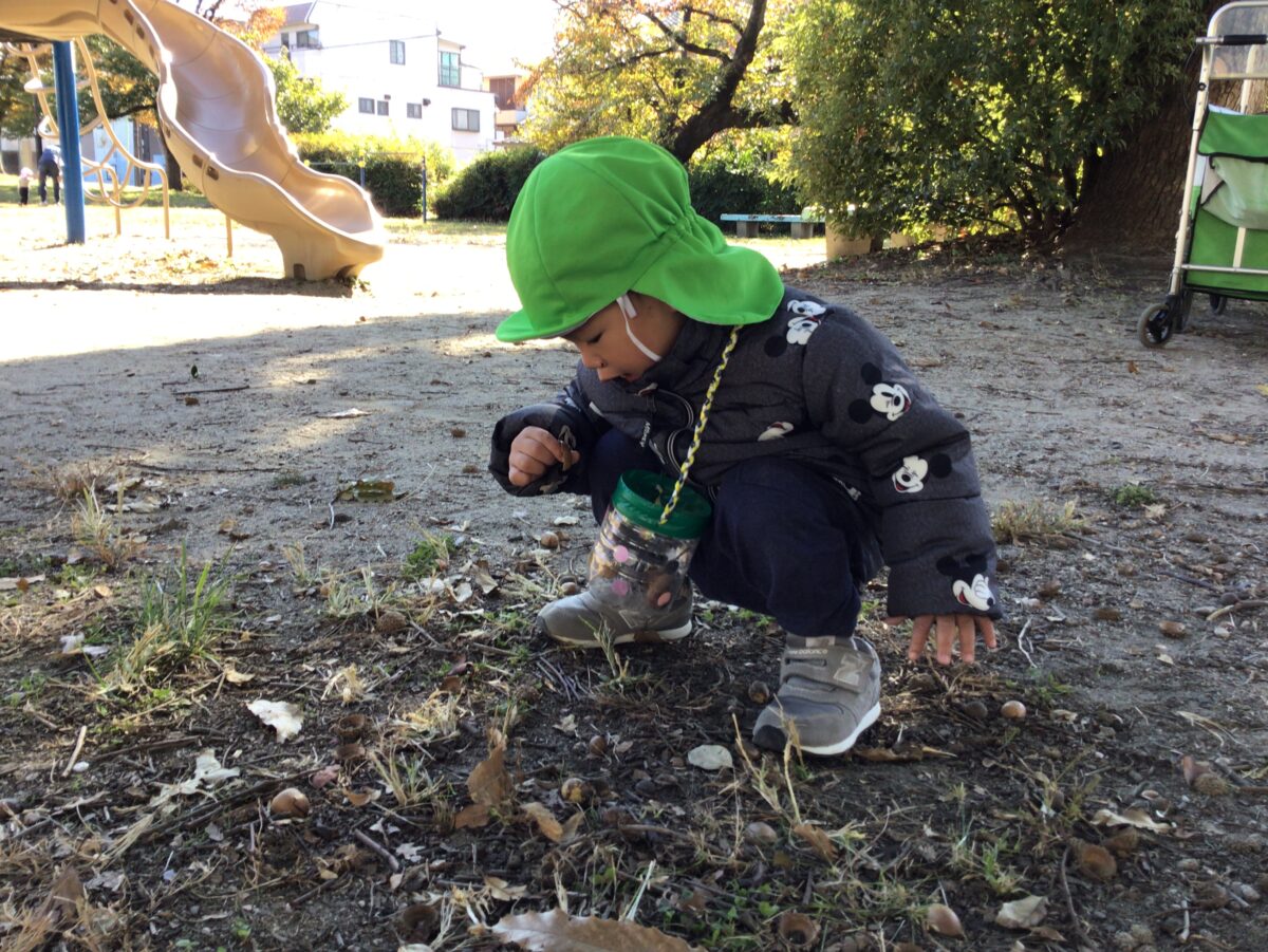 お天気のいい日にはお散歩に出かけ、落ち葉やどんぐりなど