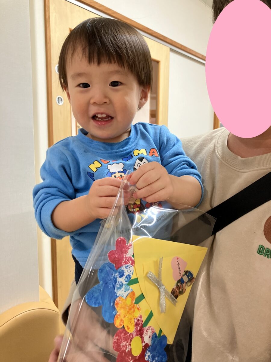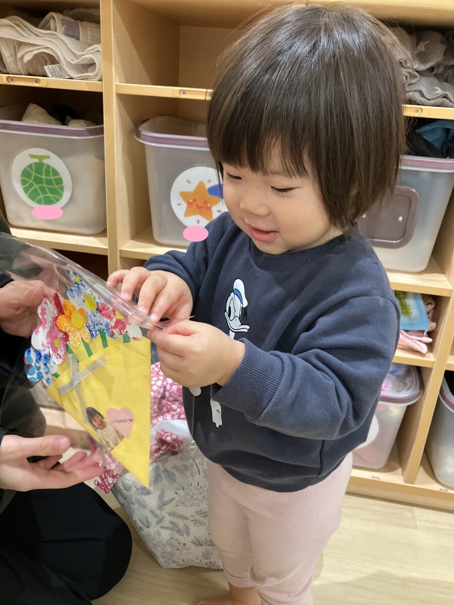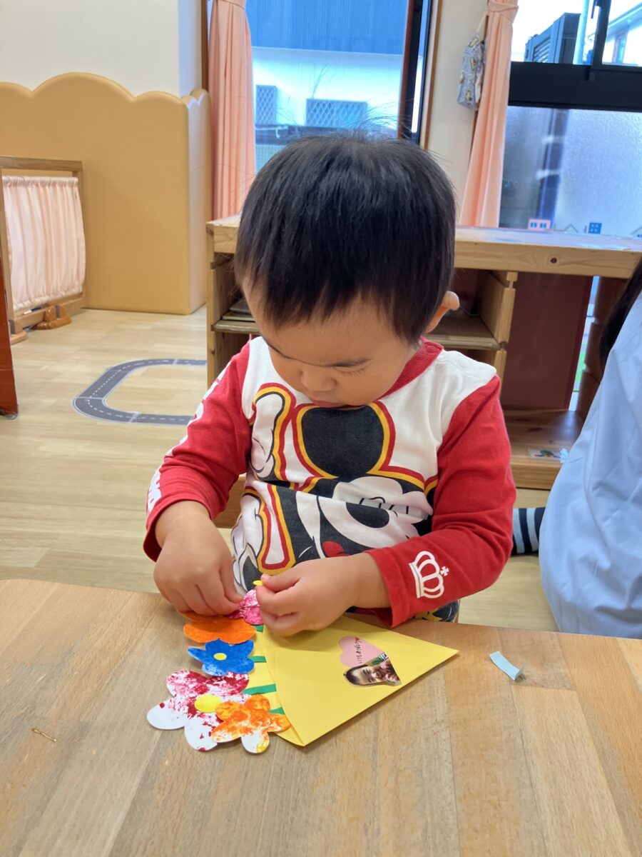 お母さんと一緒に作ったカードを嬉しそうに見ていました![]()