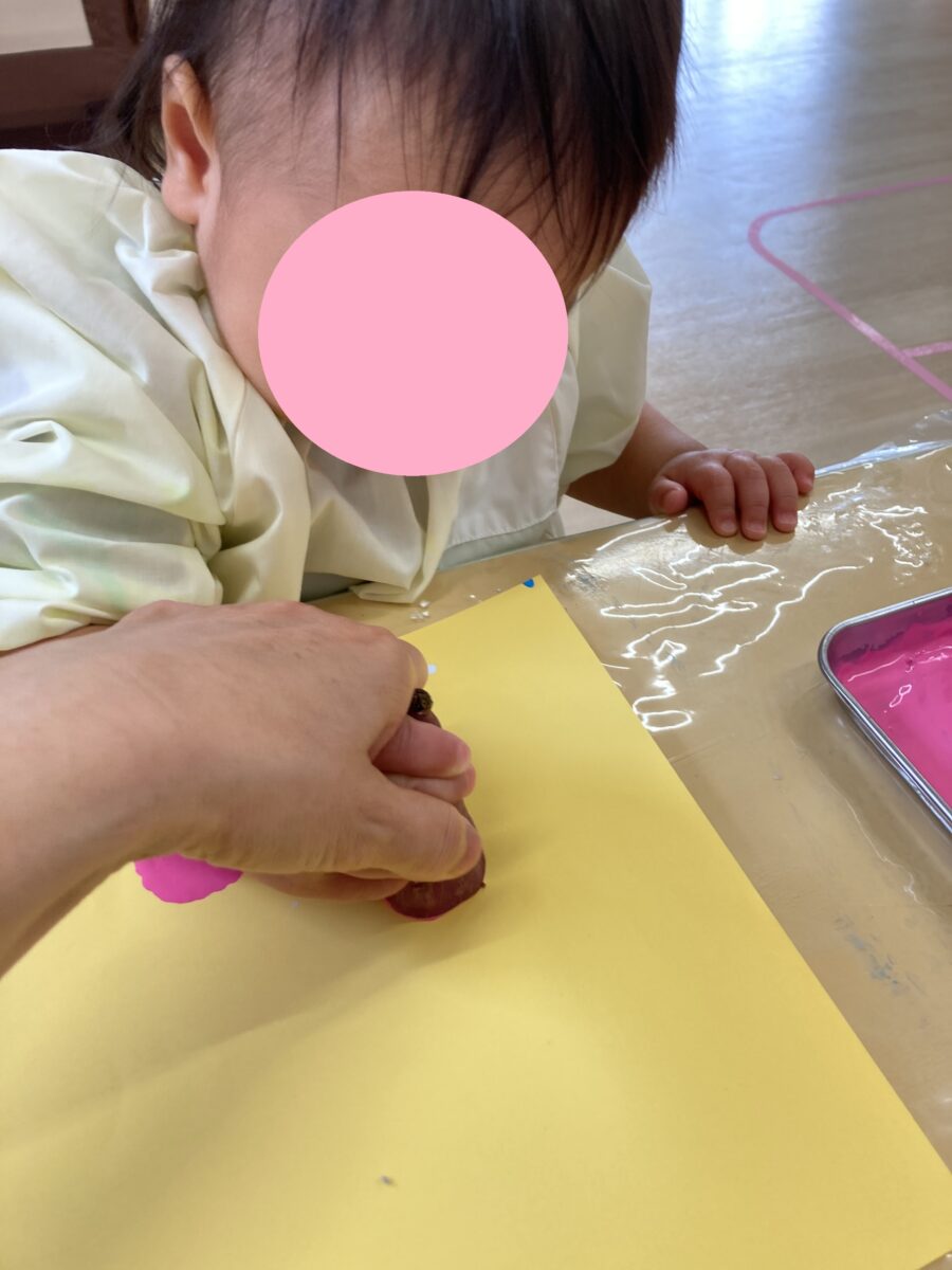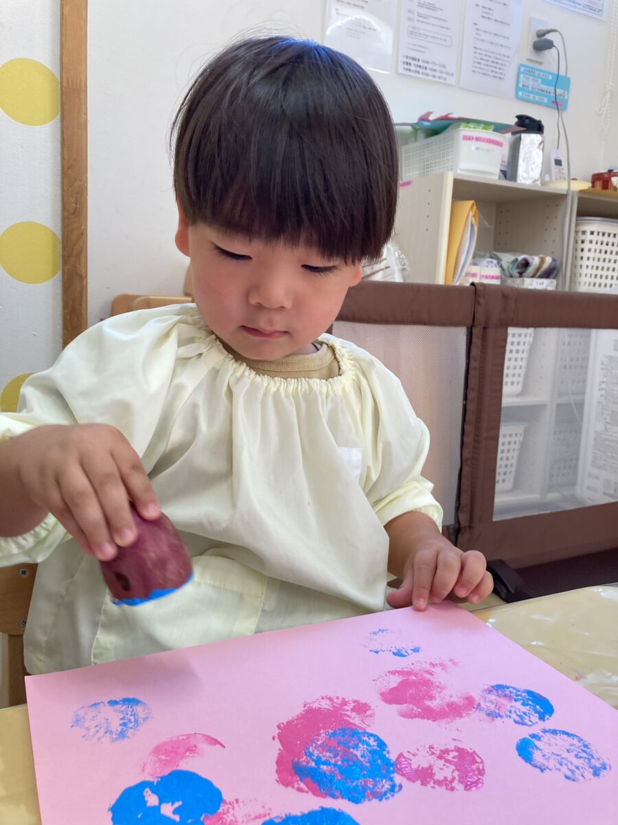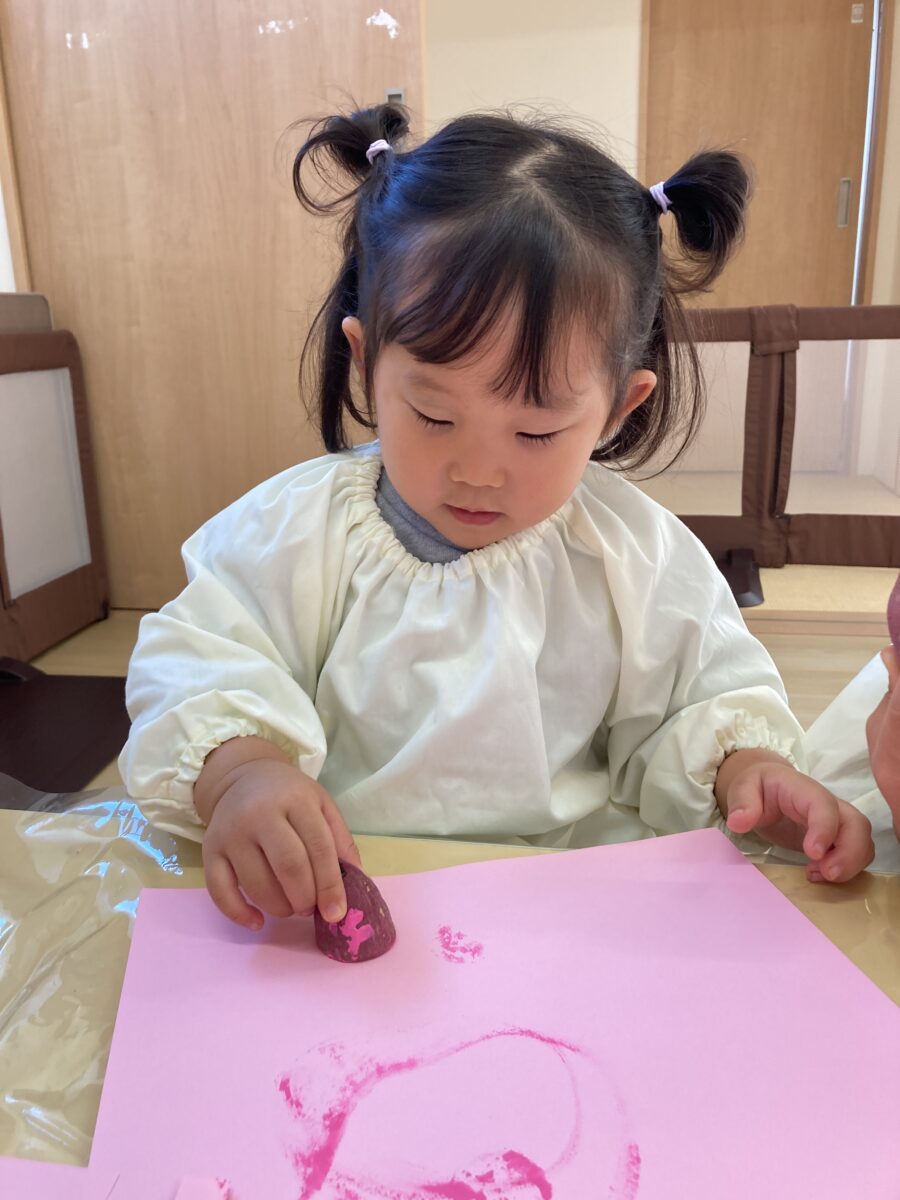 2歳児さんはお芋の感触を楽しみながら押していました![]()